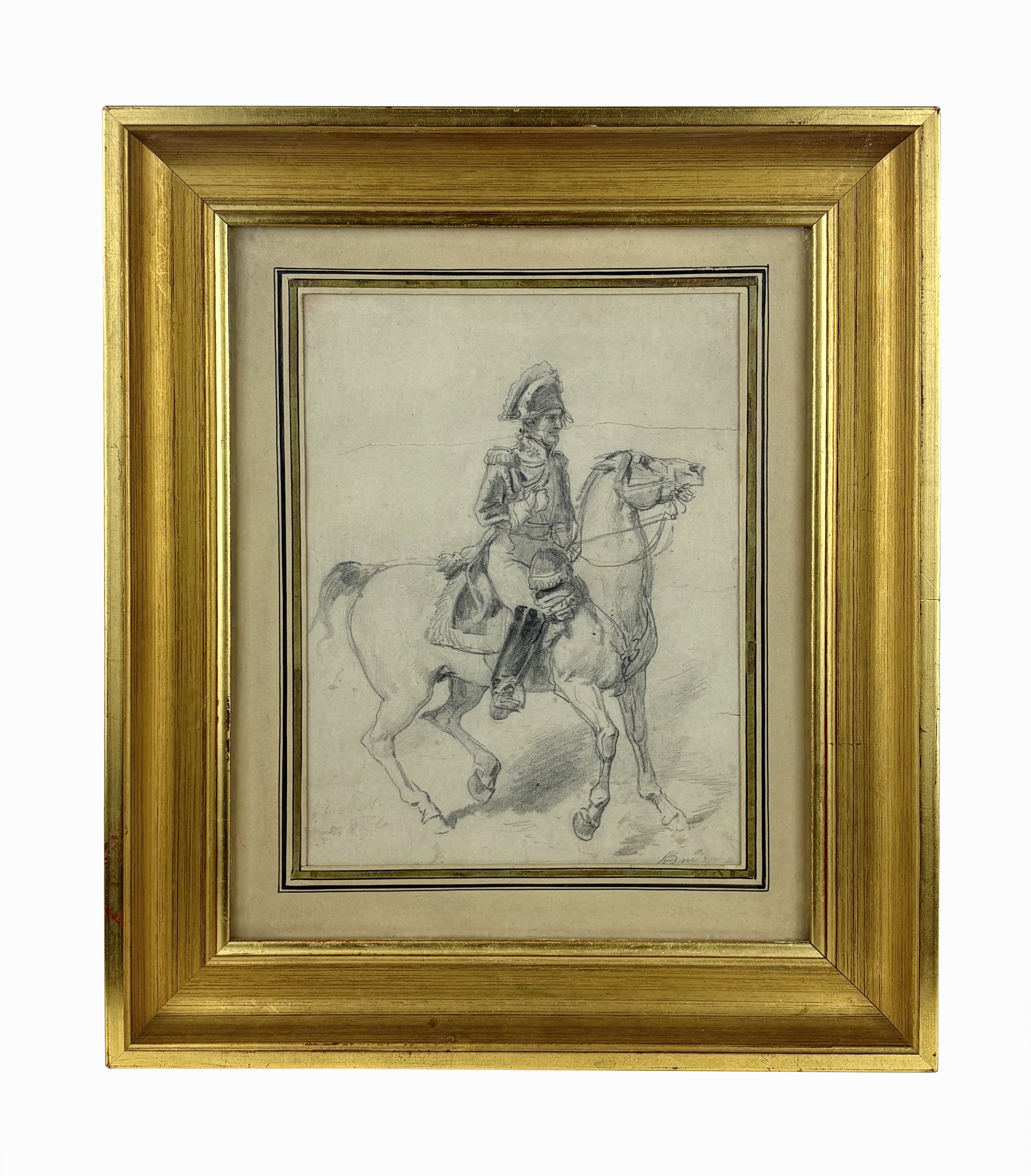 Portrait equestre d'un officier, mine de plomb sur papier, signée, 22x16 cm. Provenance: Les Stern, une famille de collectionneurs. Pour les lots précédés d’un *, la TVA de 8,1% est due sur l’entier du prix d’adjudication.