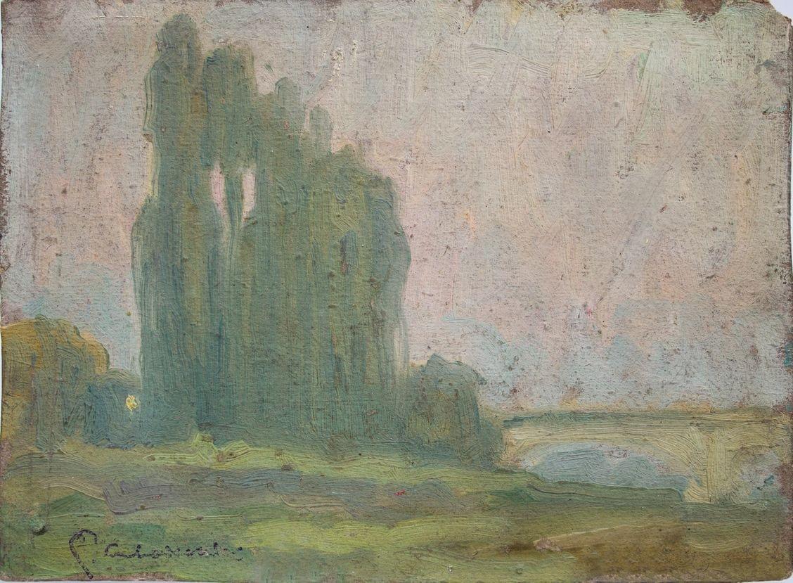 Cour de ferme, lavis et mine de plomb sur papier, 35x41 cm