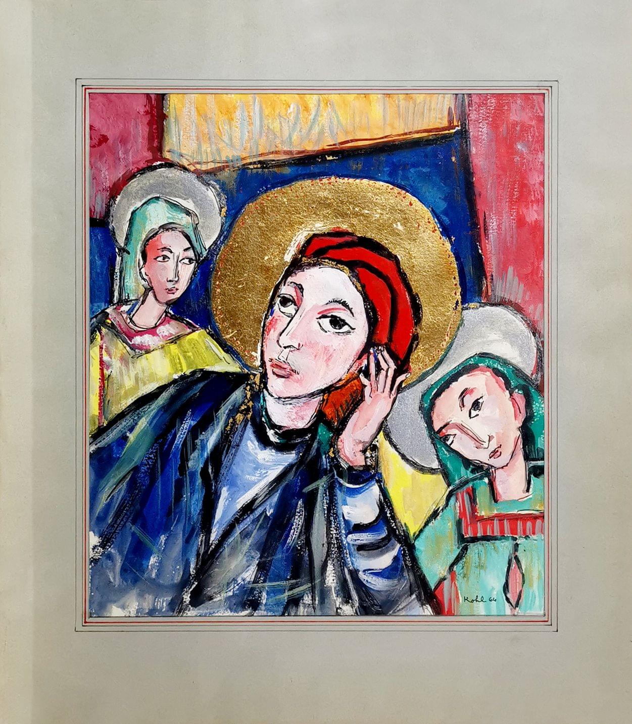 Les Trois Maries, aquarelle et gouache sur papier, signée et datée 64, 25x23 cm