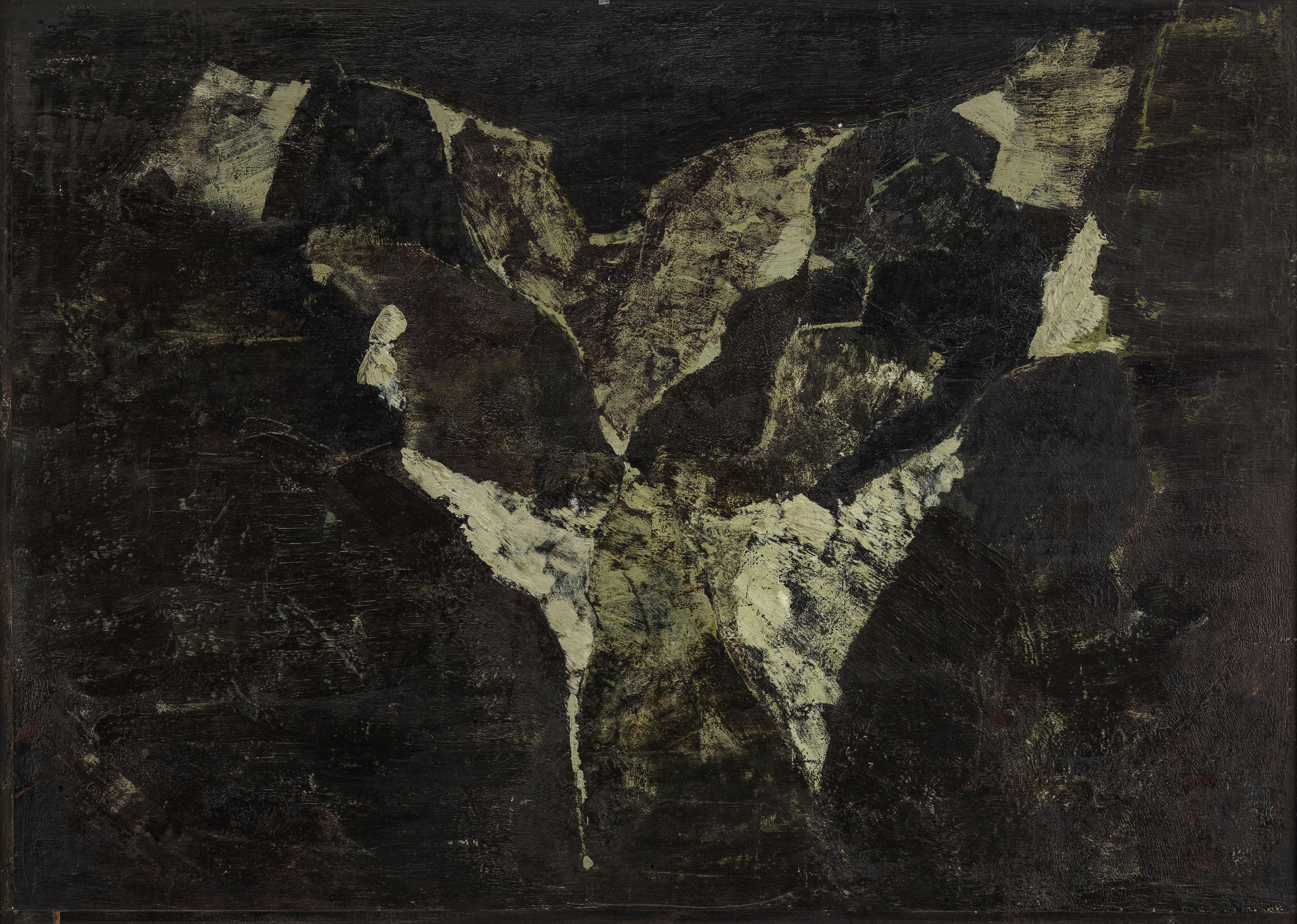 Les fleurs du deuil, huile sur carton marouflée sur isorel, 50x70 cm. Exposée en 1986 au Musée Cantonal des Beaux-Arts de Lausanne.