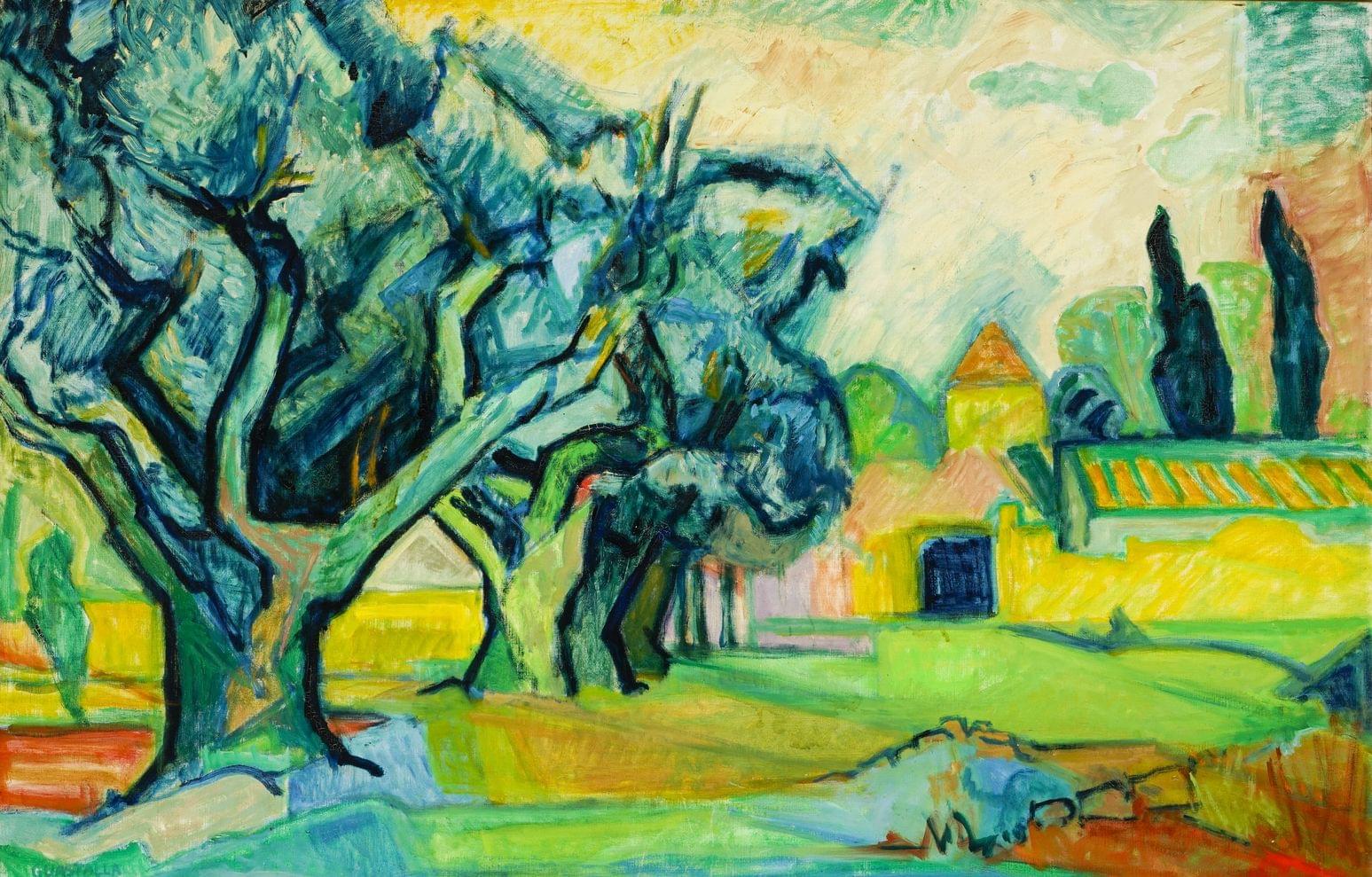 L'allée d'arbres, huile sur toile, signée, 65x100 cm