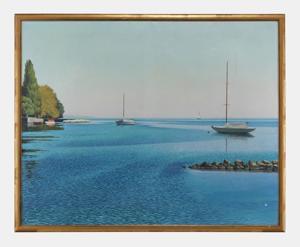 Bord du lac à Tannay, huile sur toile, signée, 73x90 cm