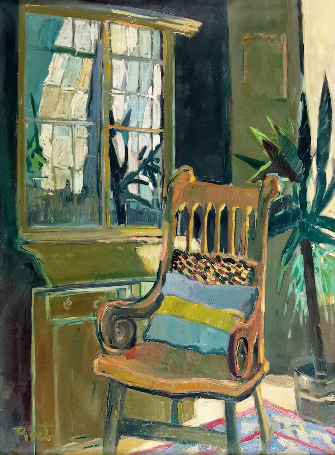 Vue d'intérieur, huile sur toile, signée, 75x54 cm