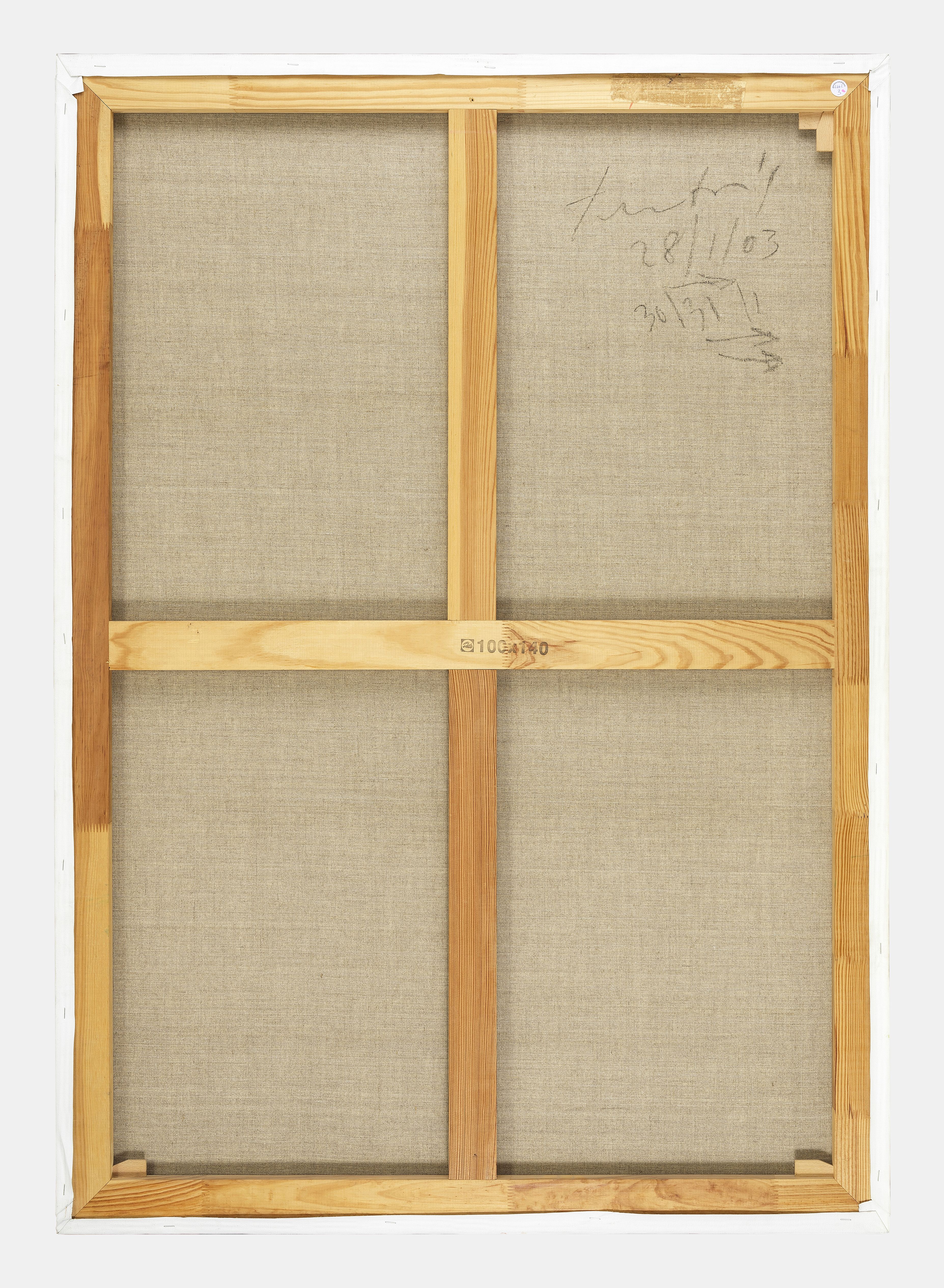 Composition abstraite orange, huile sur toile, signée, datée au dos 28/01/03, 140x100 cm