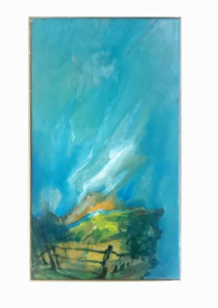 Paysage à la barrière, huile sur carton, signée, 33x19 cm