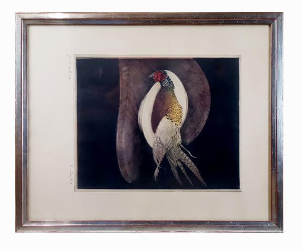 Nature morte au faisan, eau-forte, signée, 56x44 cm