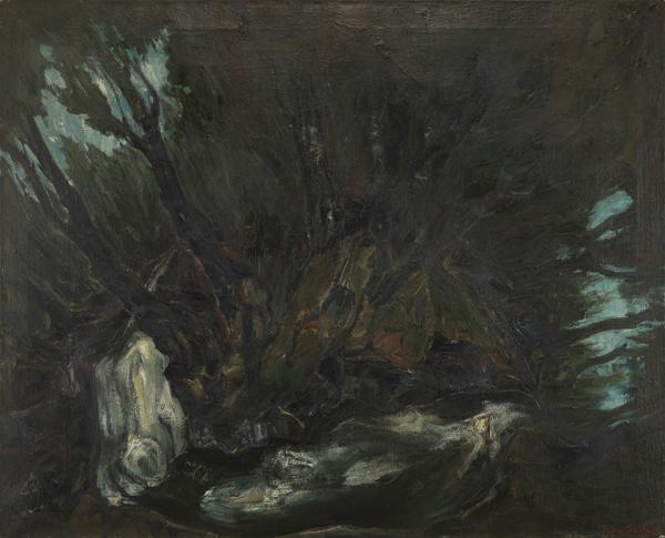 Autoportrait, fusain et gouache blanche sur papier, signé et dat...