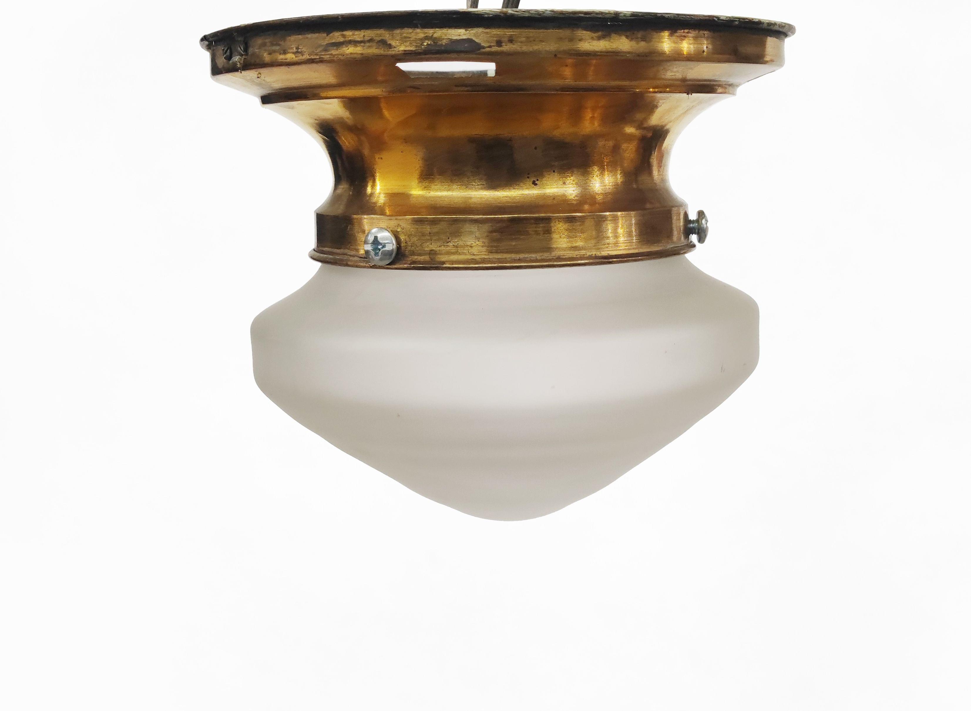 Verre dépoli et monture en laiton, D 28 cm