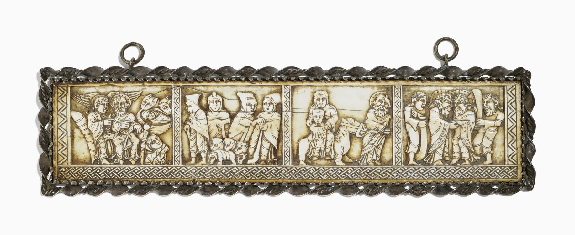 3781. Plaque de coffret figurant quatre scènes de la Vie du Christ dans le goût byzantin, XXe s