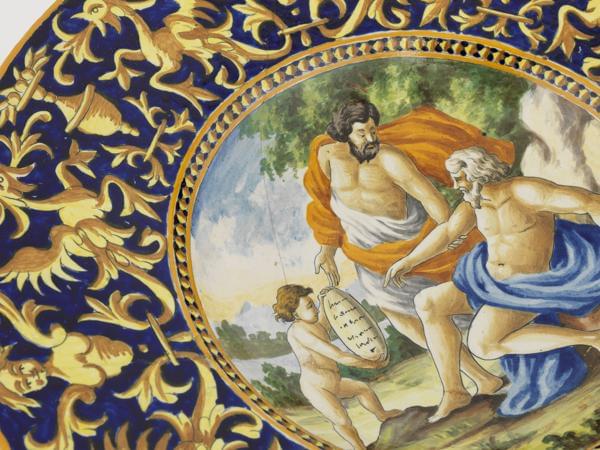 4472. Plat en majolique à décor historié, Italie XIXe s