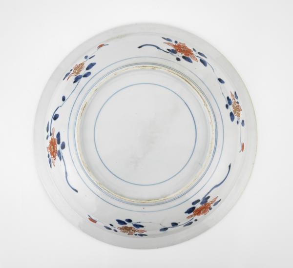 Porcelaine émaillée bleu rouge et or à décor de motifs floraux, D 34 cm
