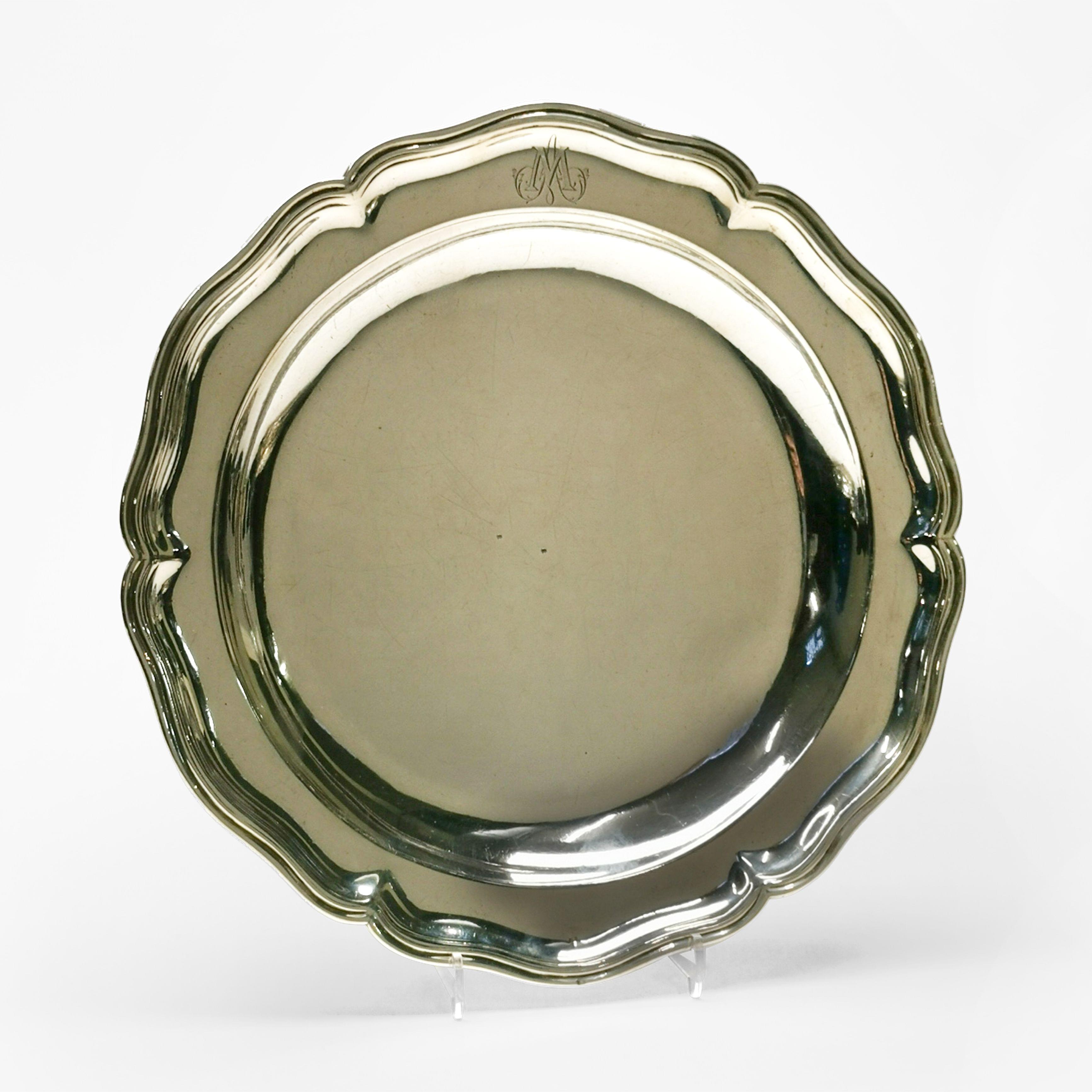 3799. Plat rond d'époque Restauration gravé d'armoiries d'alliance