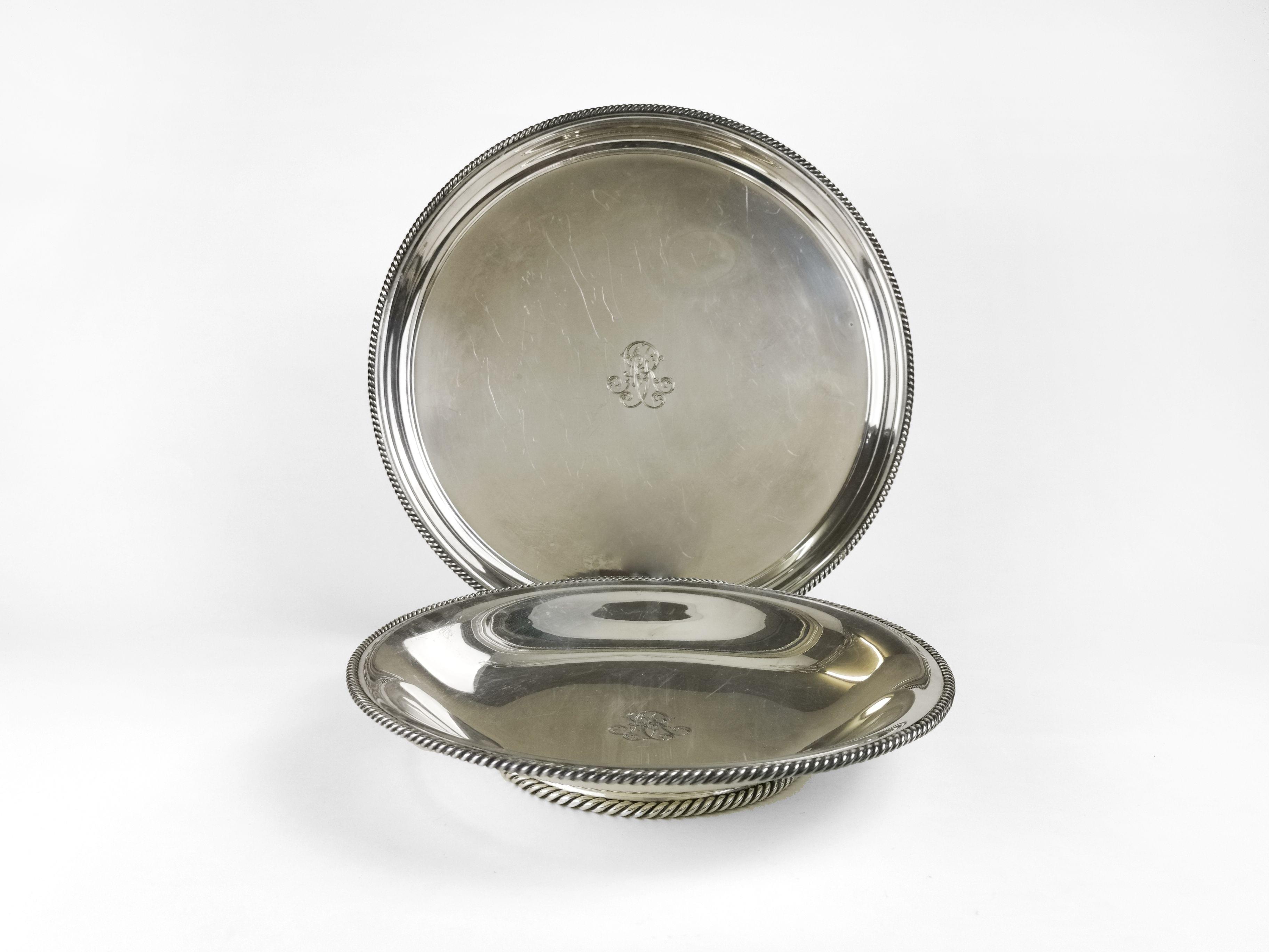Bois laqué gris, garniture au petit point à motif floral, L 180...