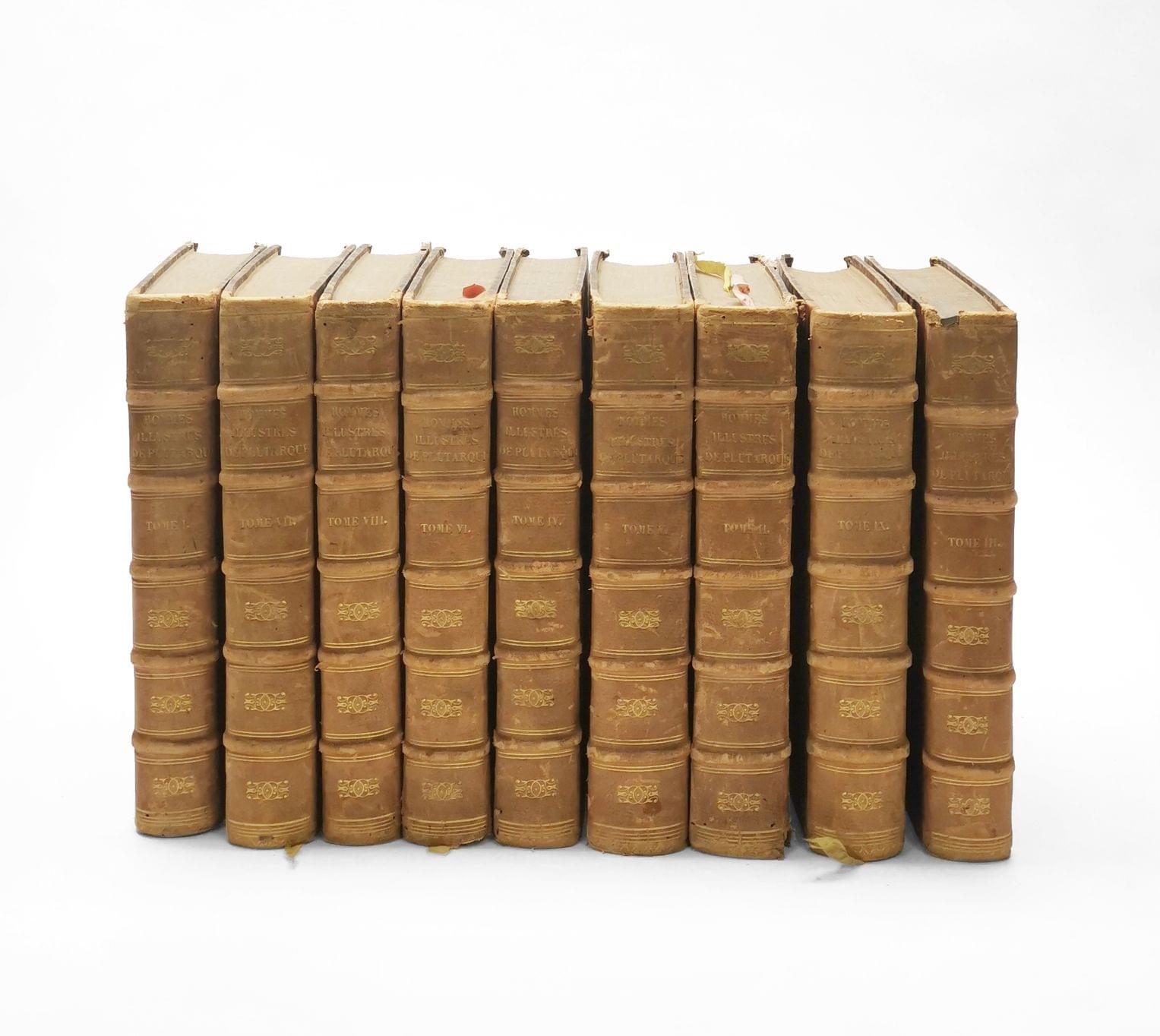 9 vol. in 4°, demi-basane blonde, dos à nerfs ornés, tranches marbrées. Reliure du début du XIXème siècle. Traduction de Dacier. Portraits gravés. (petits défauts de reliure).