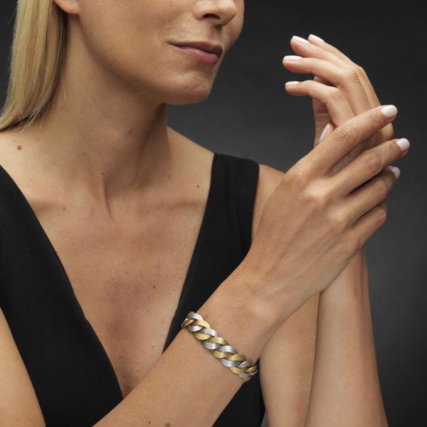 3594. Pomellato, bracelet à maille ovale deux ors à effet brossé