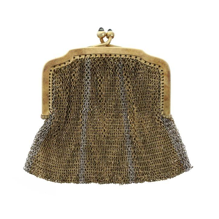173. Porte-monnaie à maille souple, fermoir serti de saphirs en cabochon