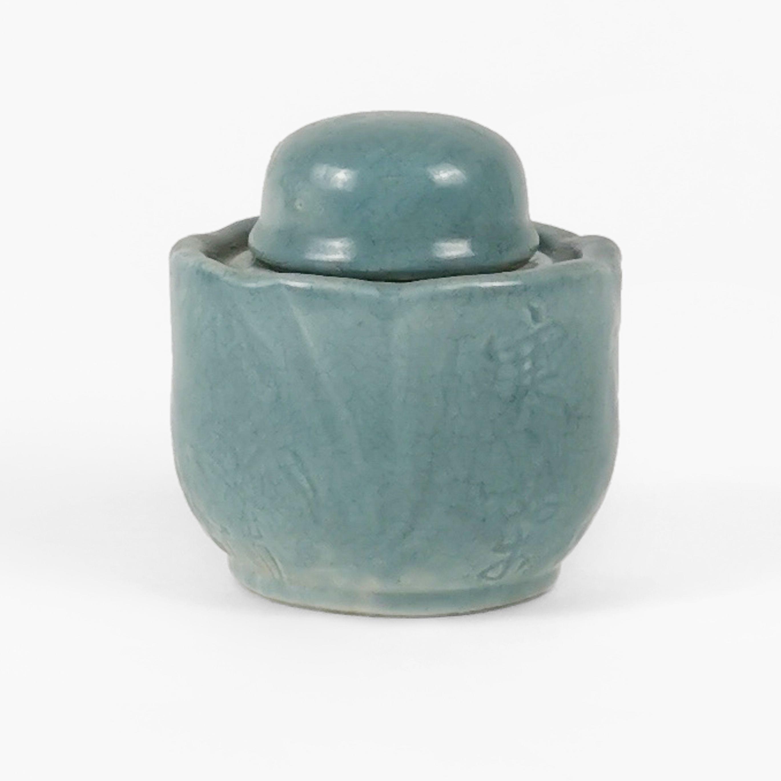 Porcelaine émaillée turquoise, H 10 cm