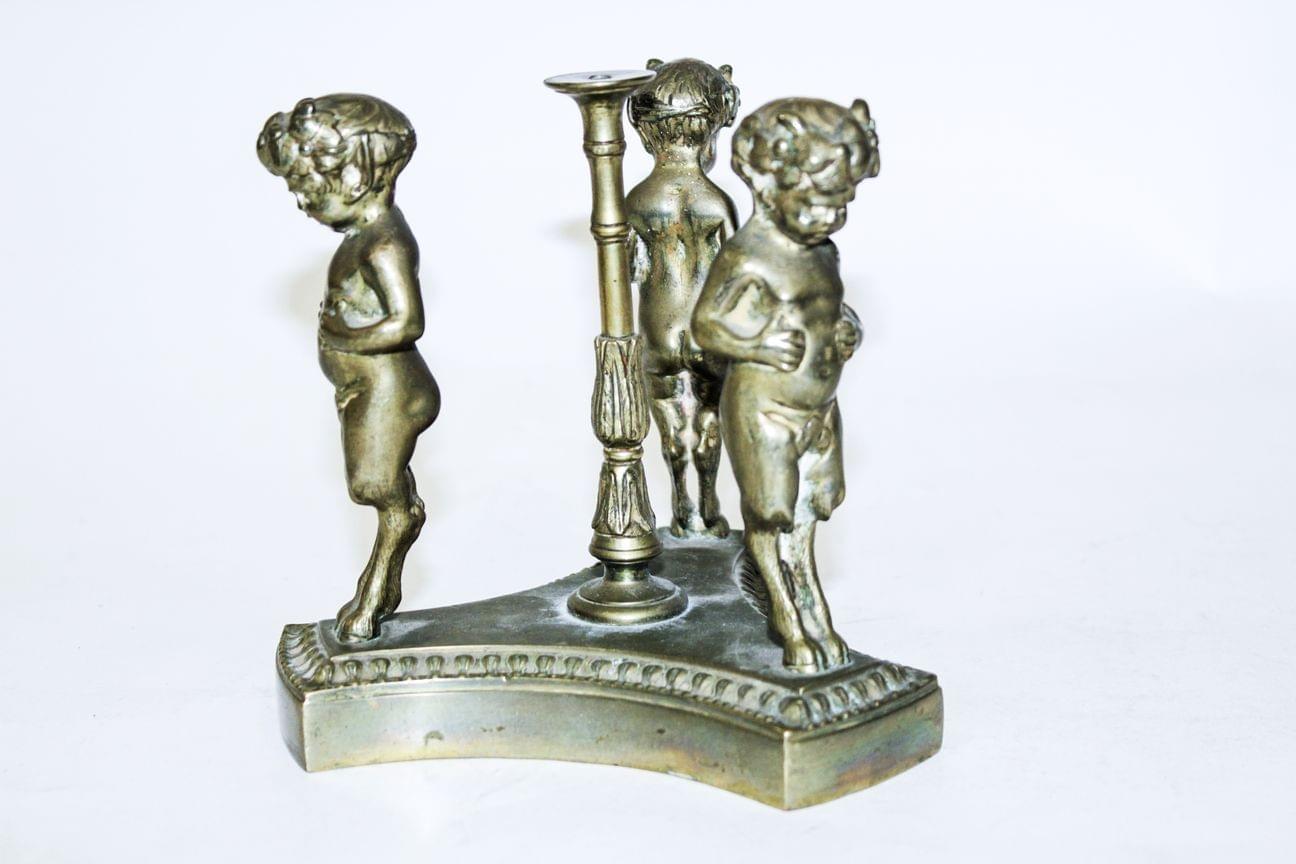 Bronze à patine foncée à décor d'animaux et frises en léger reli...
