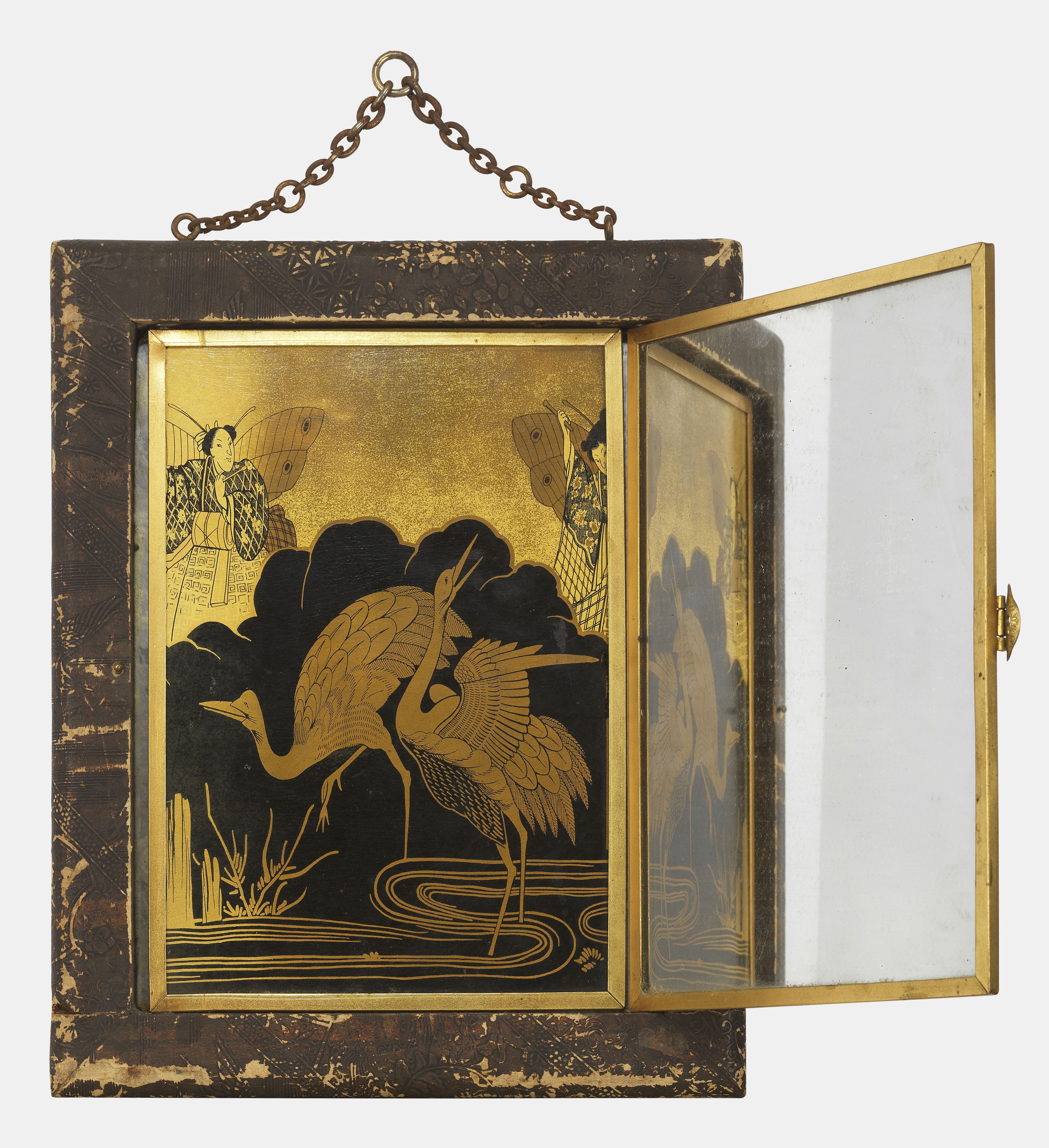 Composé de trois miroirs pivotants, dont 2 à décor en laque noire et or, dimension fermé 33x26 cm. Provenance: Les Stern, une famille de collectionneurs.