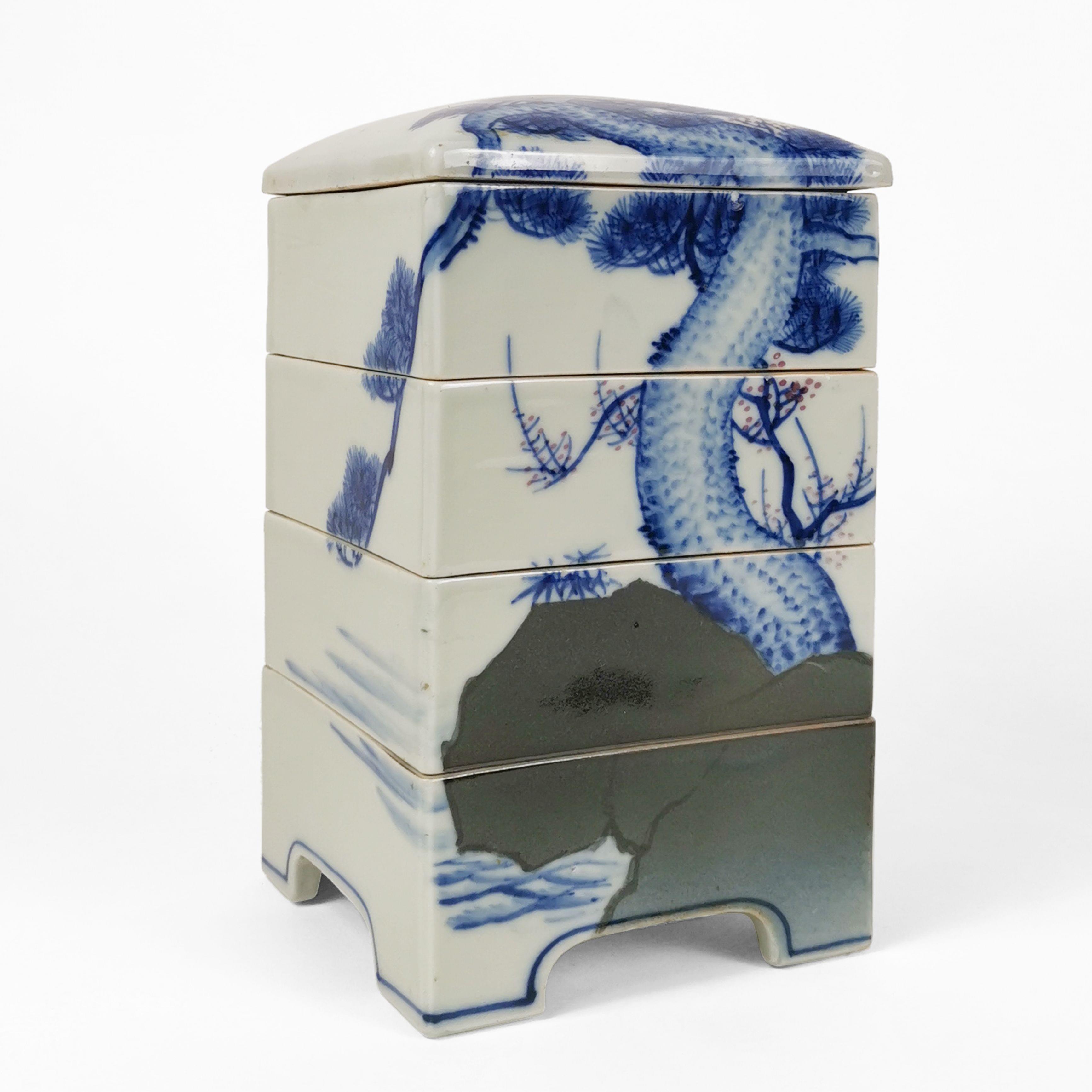 Porcelaine émaillée bleu blanc à motifs dans des réserves, H 45...