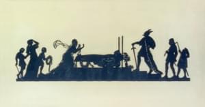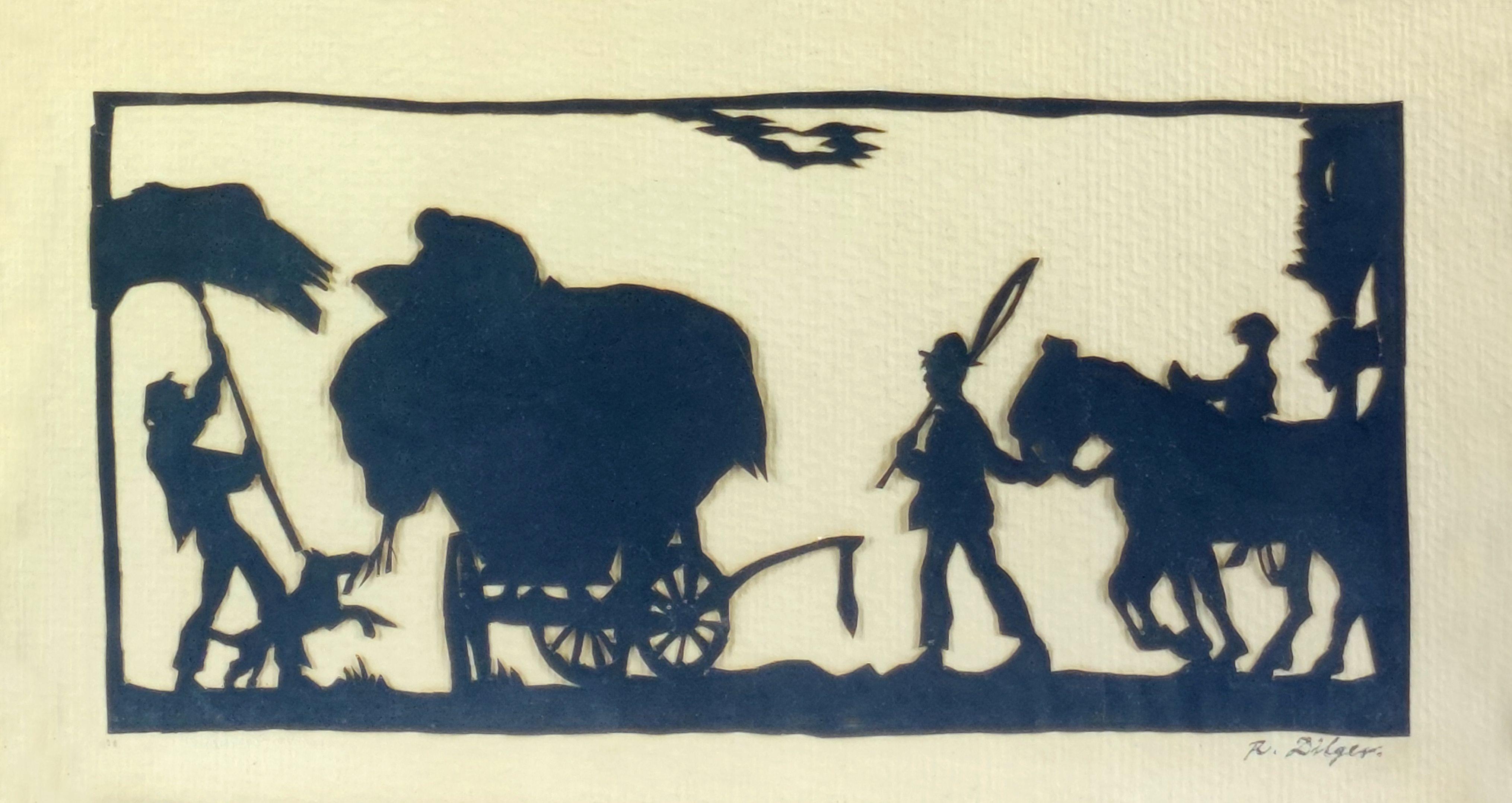 Deux découpages, l'un à décor d'une scène romantique, l'autre à décor d'une scène de campagne, 19x36 et 18x35 cm