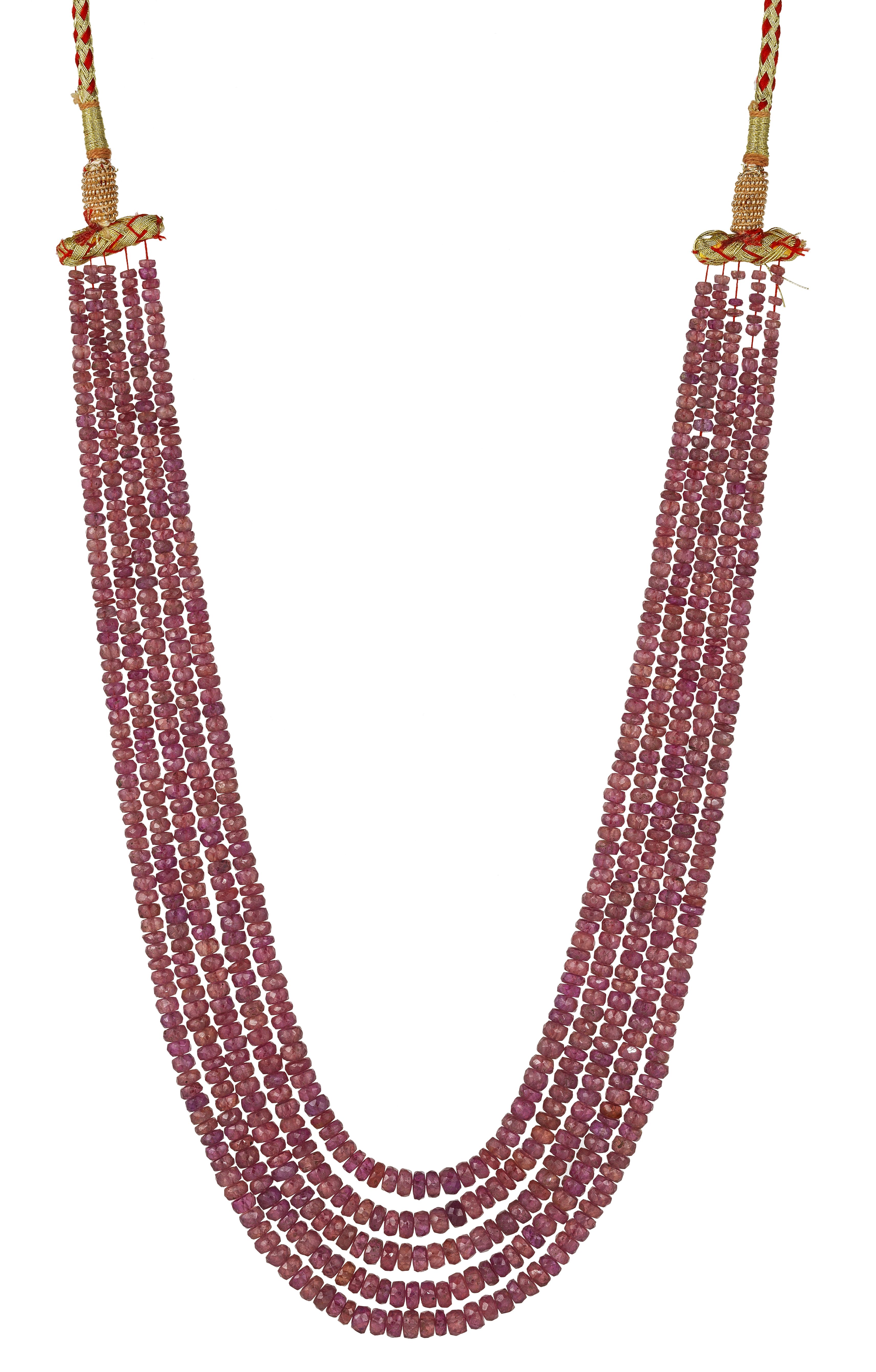 4057. *Collier composé de cinq rangs de perles de rubis en chute (D en...