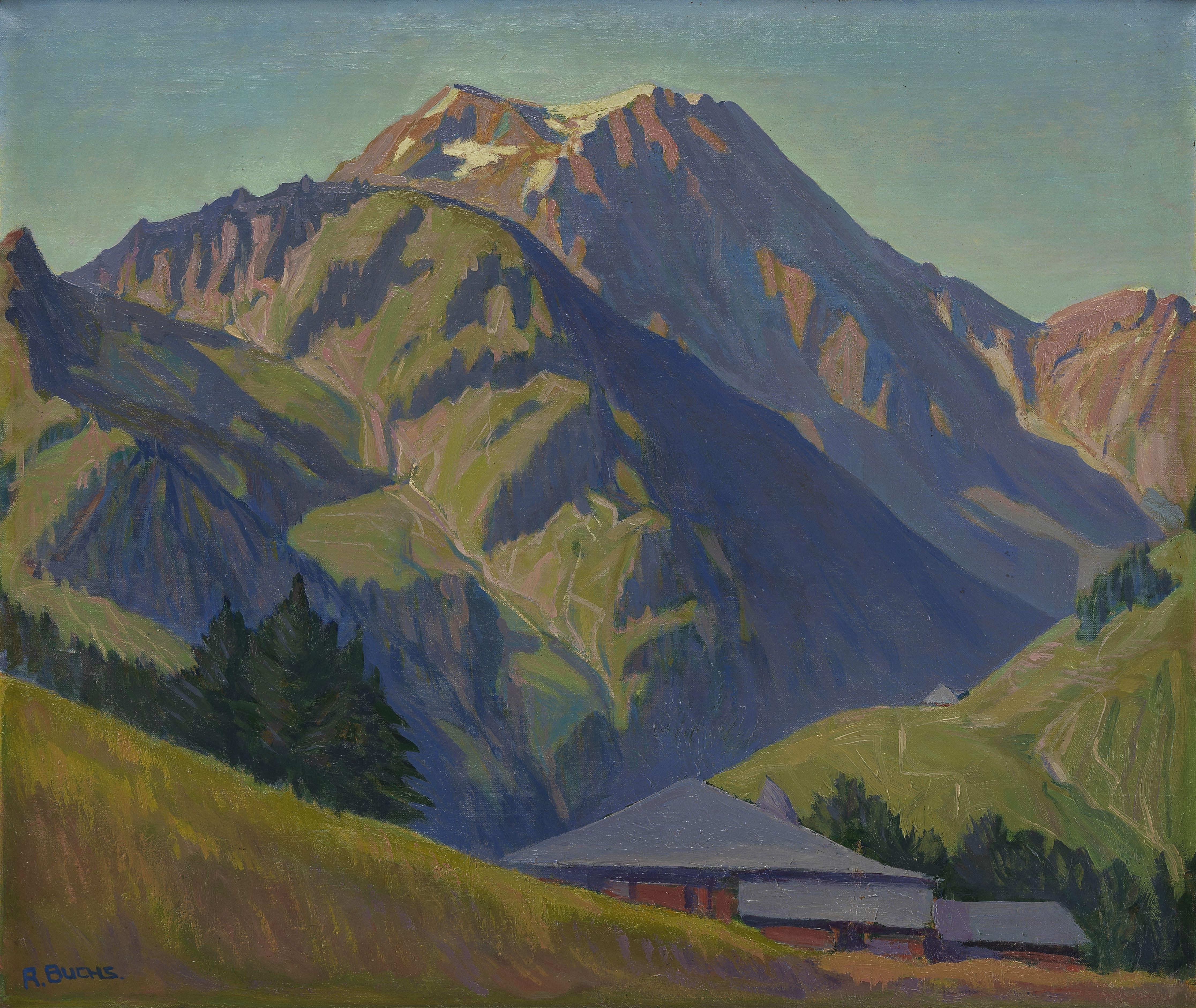La Villette et la Hochmatt, huile sur pavatex, signée, 24,5x34 c...