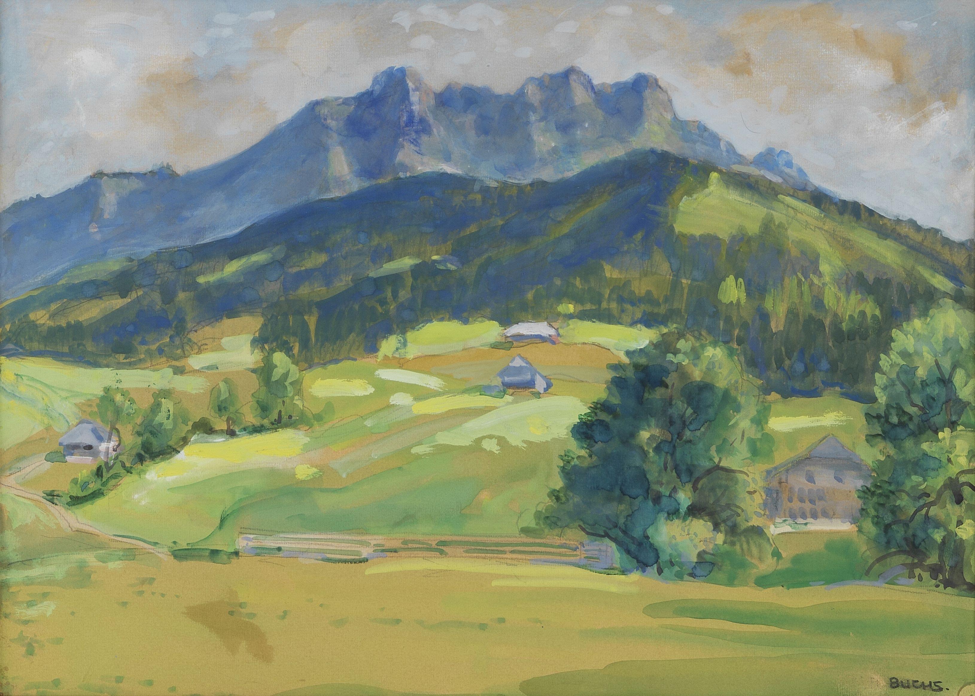 Chalet de Mr. Schaller, gouache sur papier, signée, 26,5x37,5 cm
