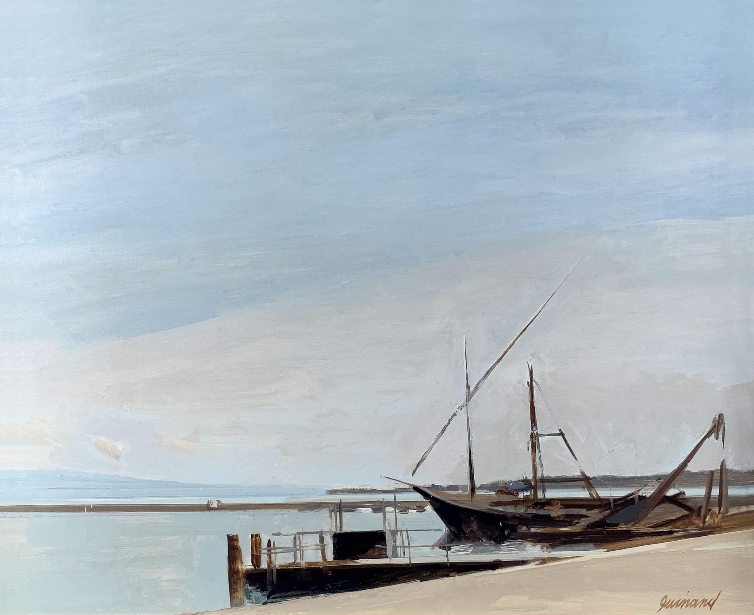 Vue du lac Léman, huile sur toile, signée, 54x65 cm.