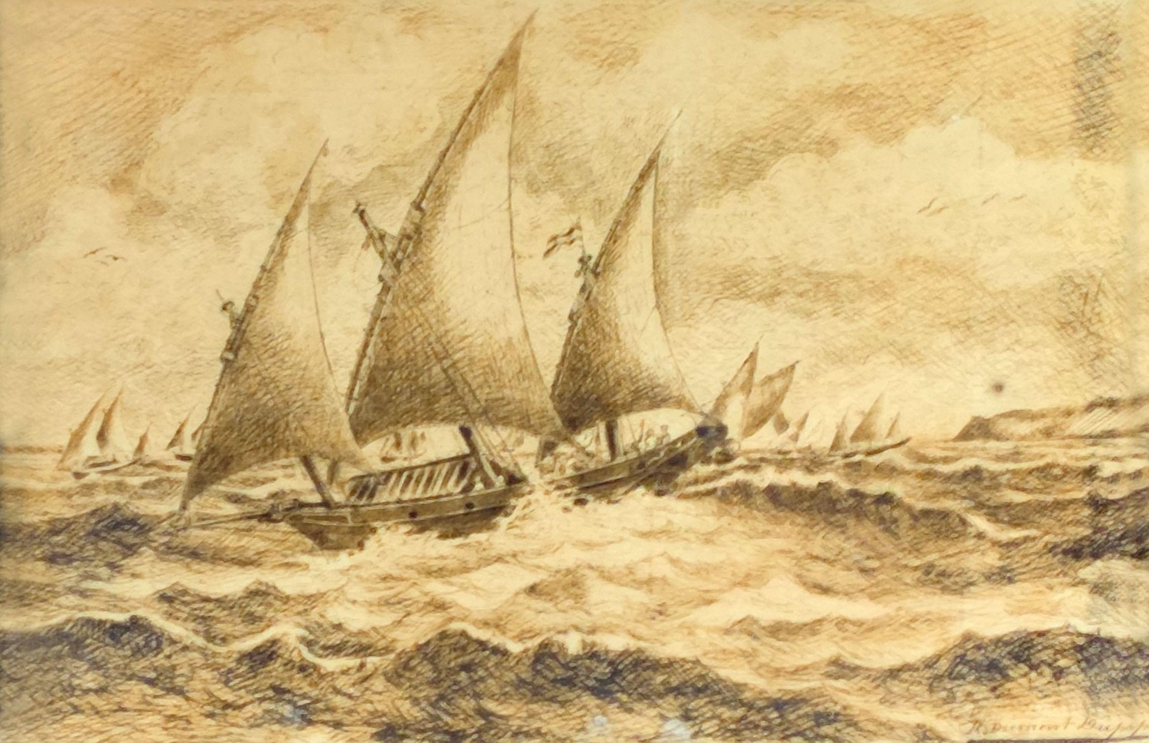 Voiliers, plume sur papier, signée, 18,5x28,5 cm