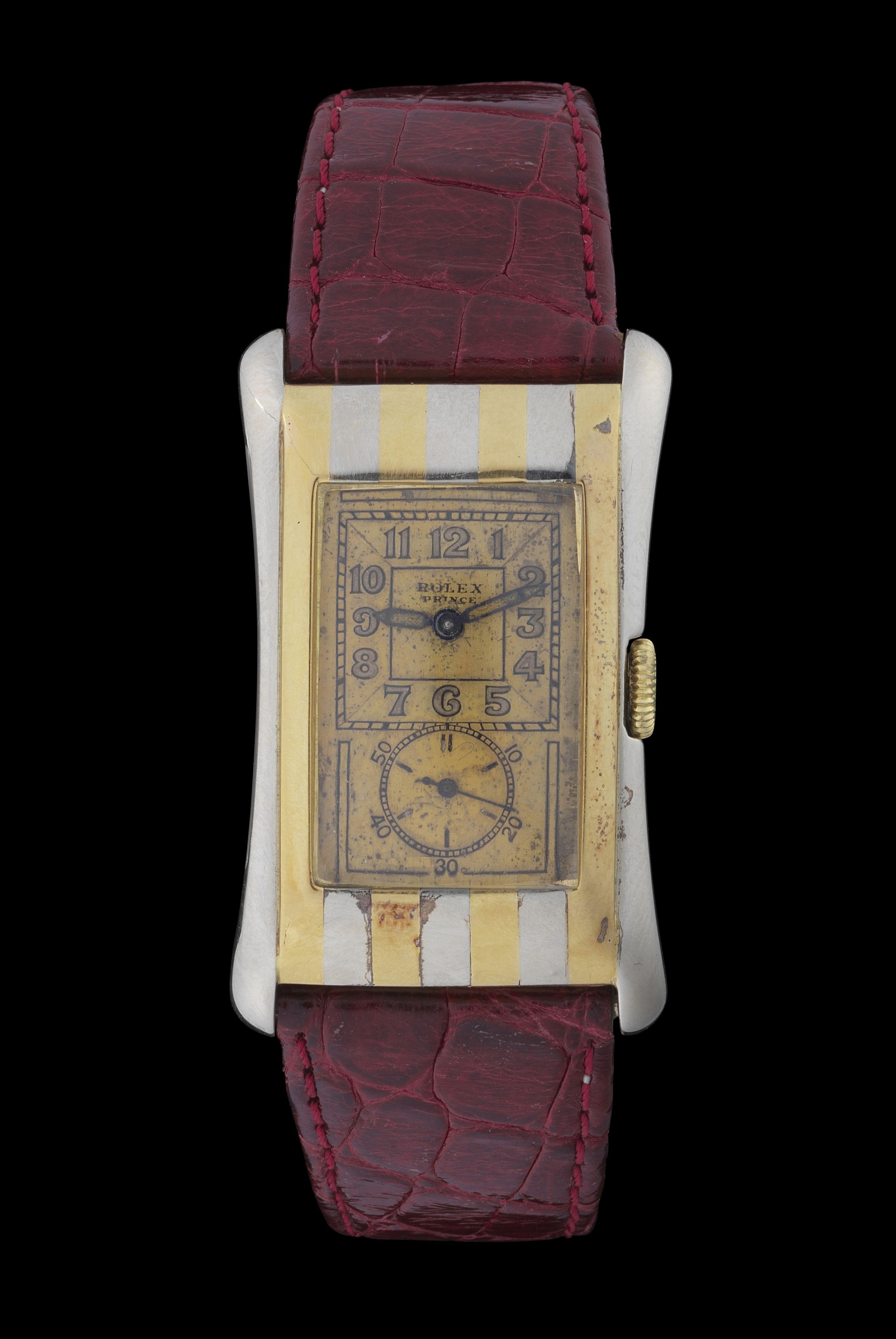 179. Rolex, Prince Brancard, montre rectangulaire mécanique bicolore