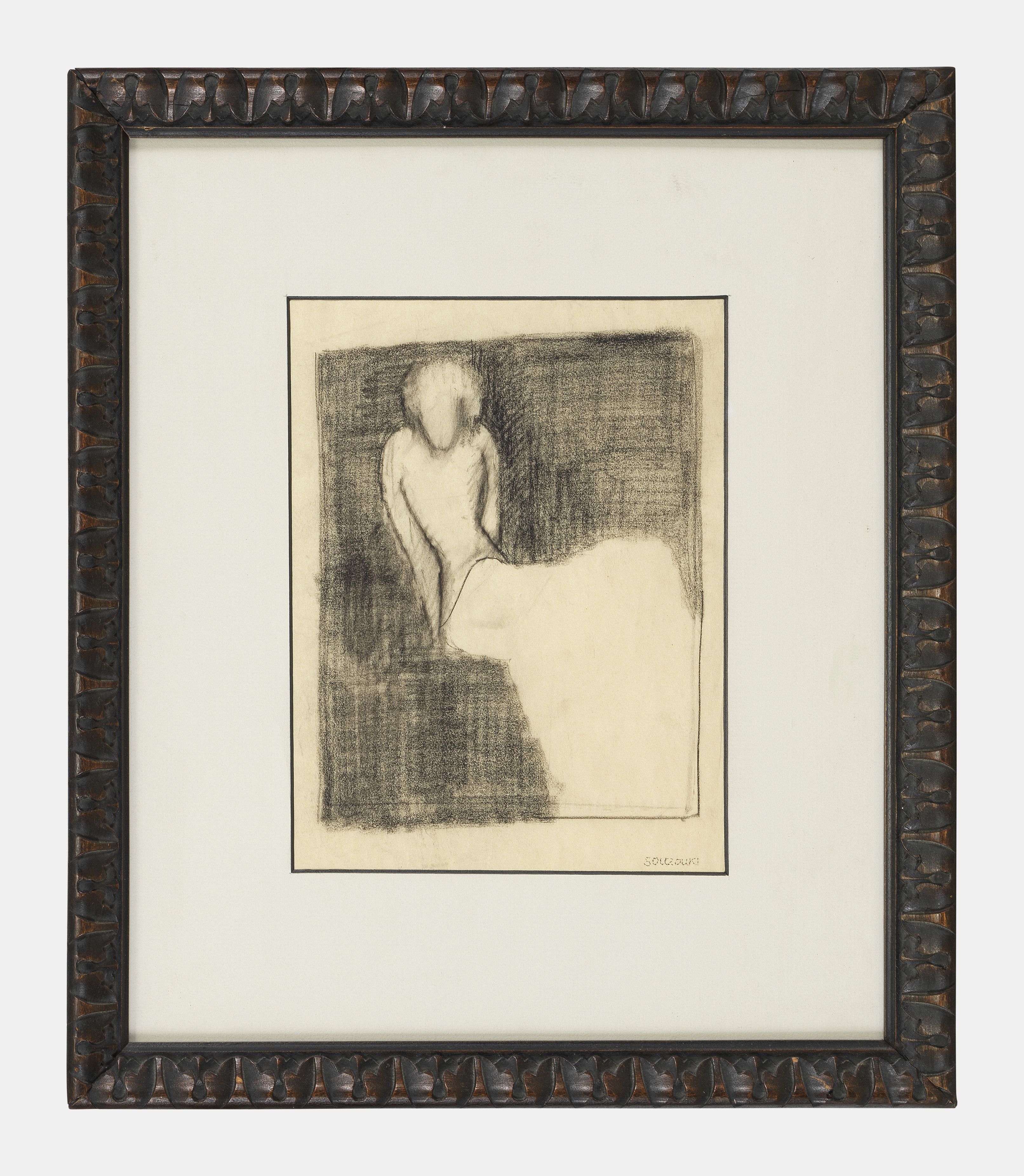Femme assise, mine de plomb sur papier, signée, 23x18 cm