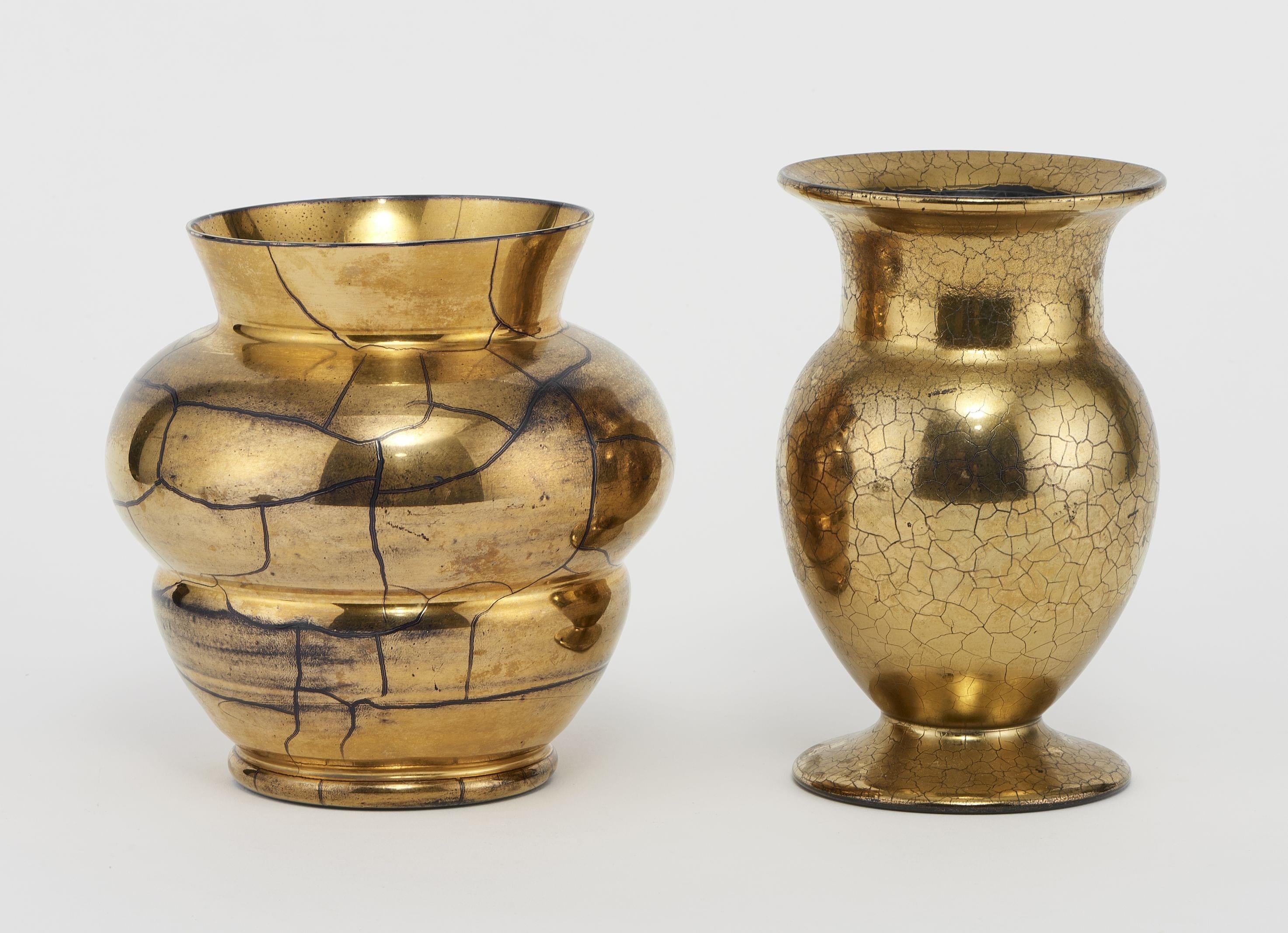 Verre or craquelé, H 16 et 18 cm. Provenance: collection Pernet-Villaverde