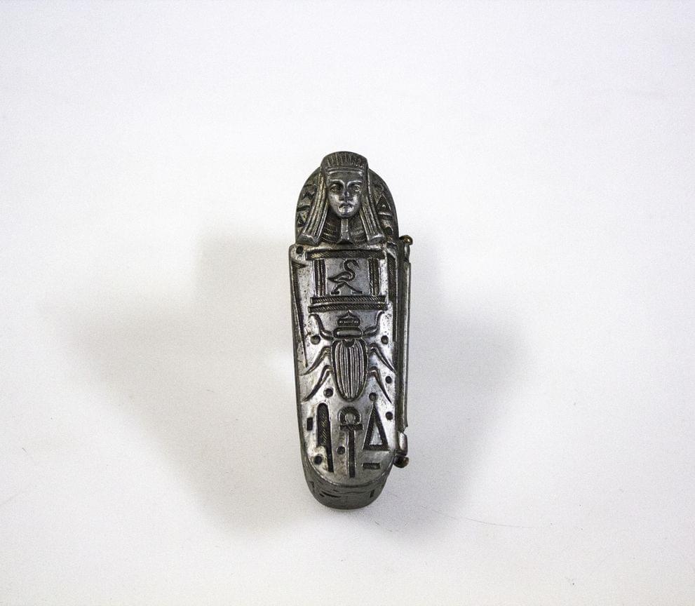 207. Epingle formant une croix ciselée sertie de verre sur paillon ve...