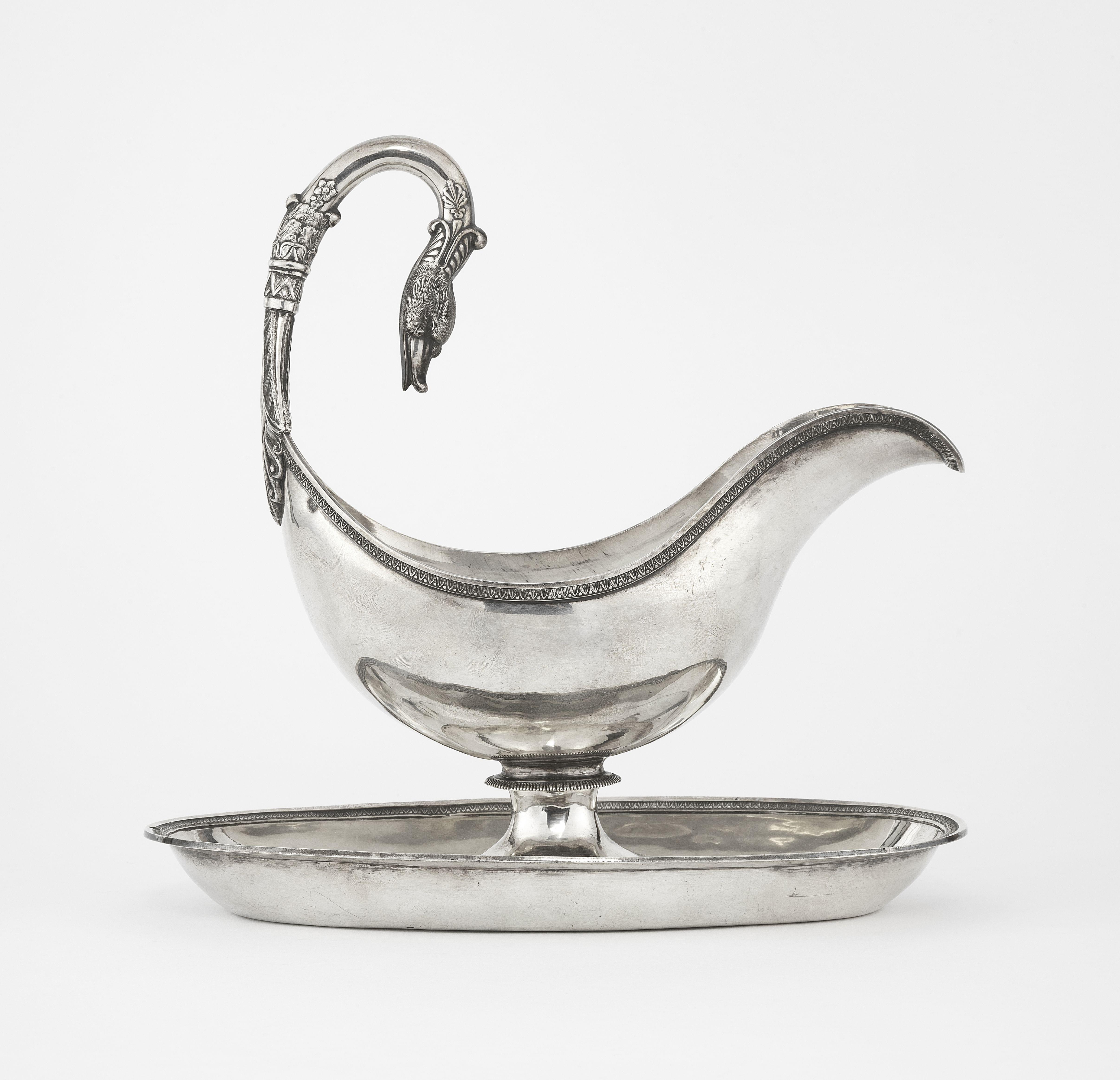 211. Bouillon sur présentoir à décor appliqué de griffons et palmette...