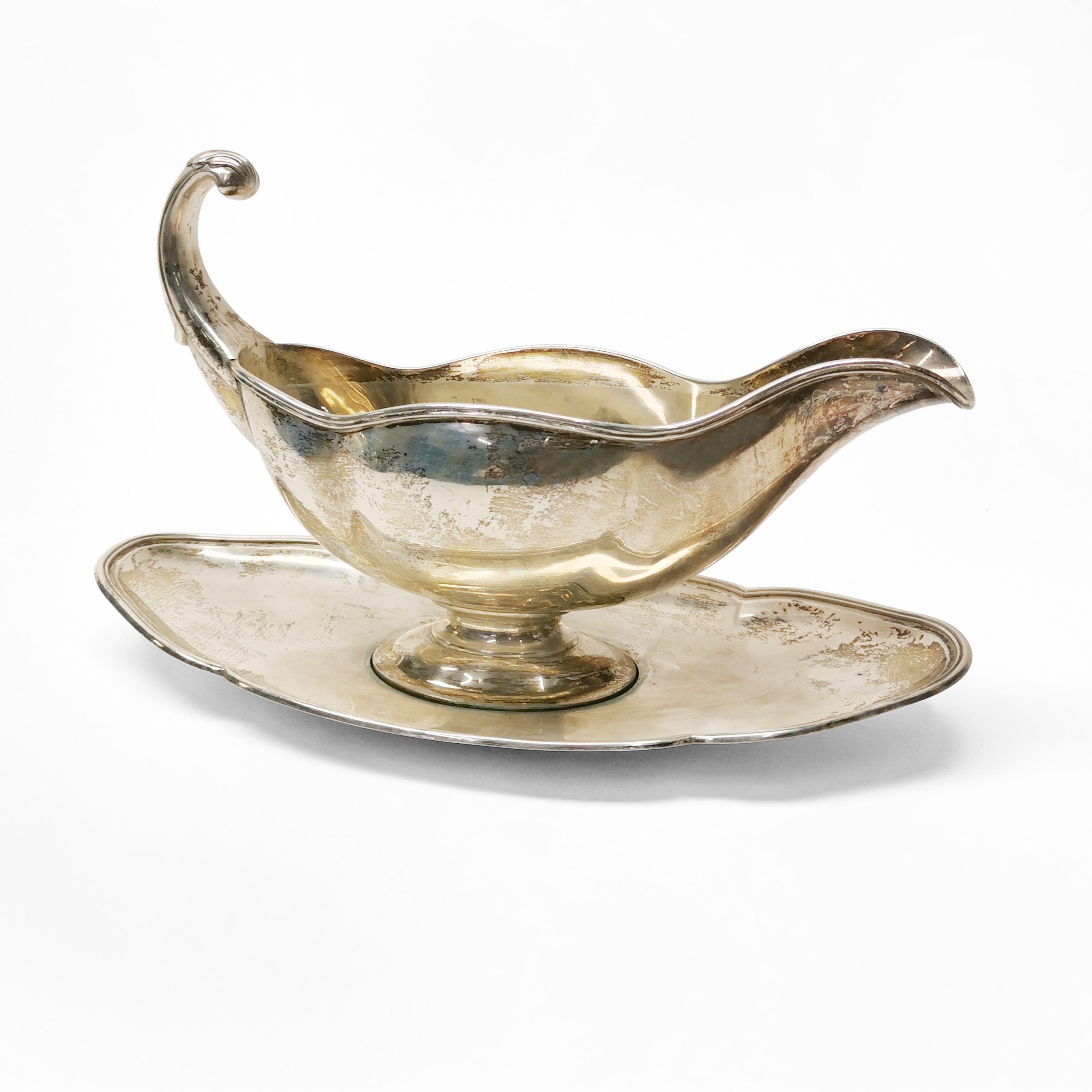 3856. Saucière sur présentoir à motif ruban croisé et acanthes