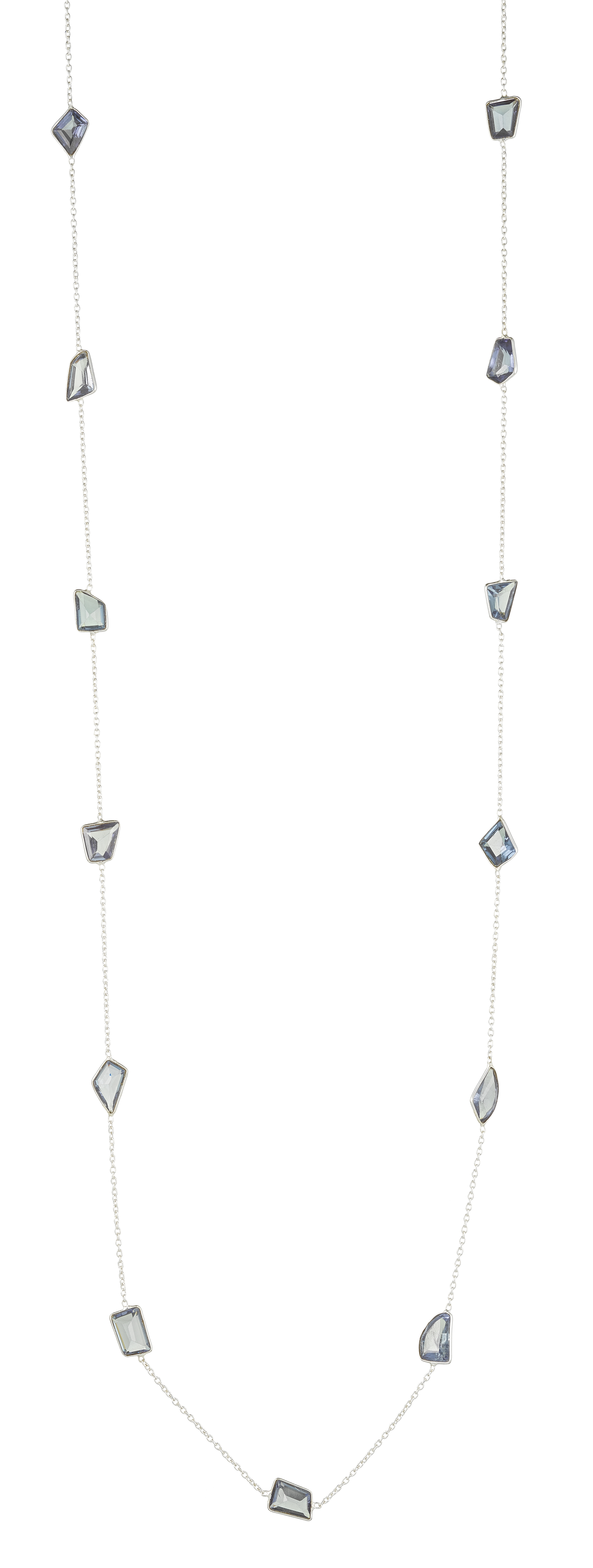 4033. *Sautoir à maille forçat ponctué de perles de labradorite facett...