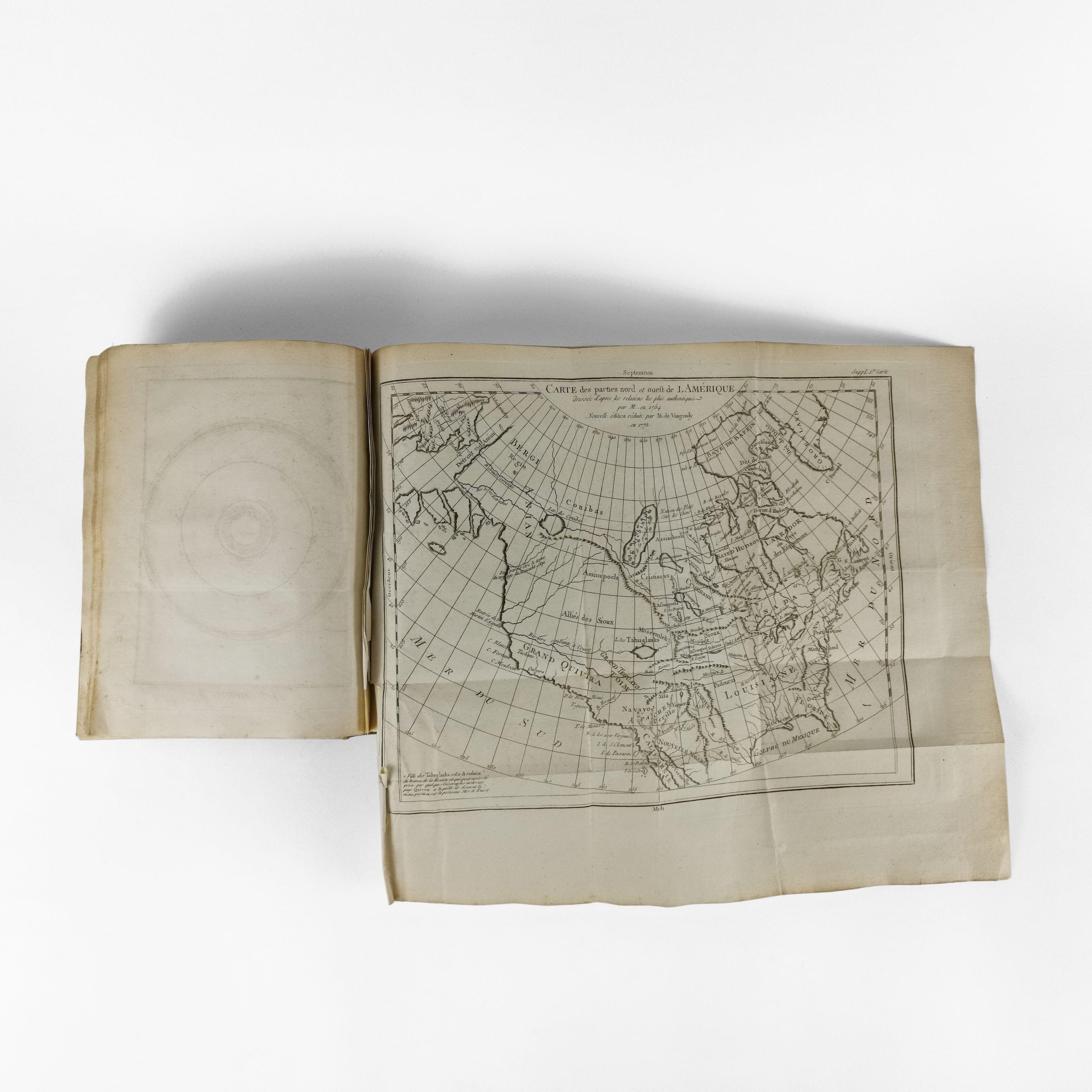 In 4°, demi vélin à coins, pièce de titre. Reliure postérieure. Il comprend : Géométrie, 1 pl. ; algèbre : 1 pl. ; Mécanique : 3 pl. ; Optique : 2 pl. ; Astronomie : 7 pl. ; Géographie : 10 pl. ; Gnomonique : 7 pl. ; Physique : 3 pl. ; Architecture : 17 pl. ; Briqueterie : 1 pl. ; Chaufournier : 2 pl. ; Couvreur : 2 pl. ; Bagne de Brest : 5 pl. ; Théâtre : 7 pl. (manque la pl. 4) ; Architecture navale : 1 pl. ; Art militaire : 13 pl. (et 8 pl. non num.) ; Tactique des Grecs : 2 pl. ; Tactique des Romains : 3 pl. ; Fabrique des armes : 7 pl. (manque la pl. 4) ; Chirurgie : 8 pl. ; Musique : 21 pl.
