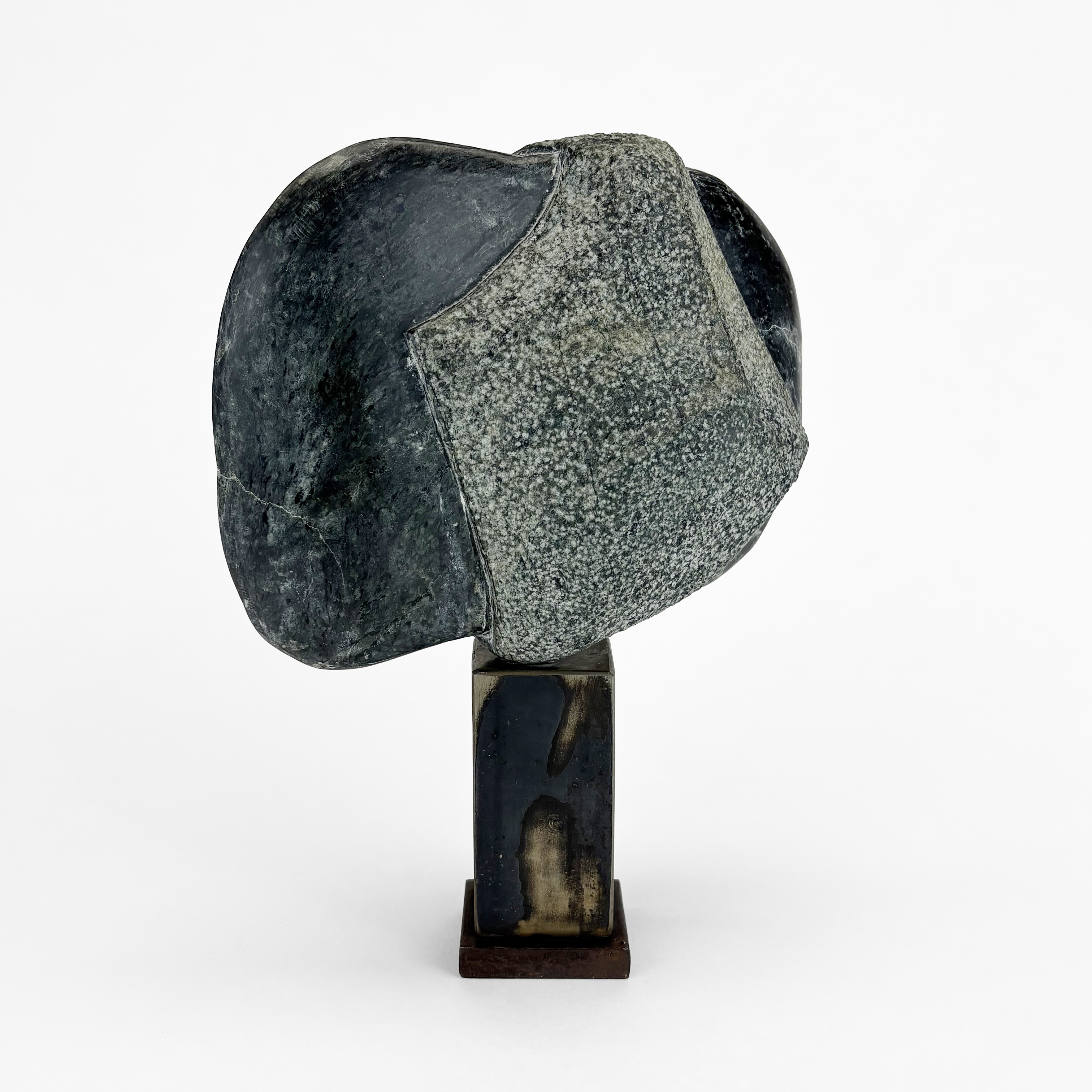 Pierre sculptée polie avec support en fer forgé, H 28 cm