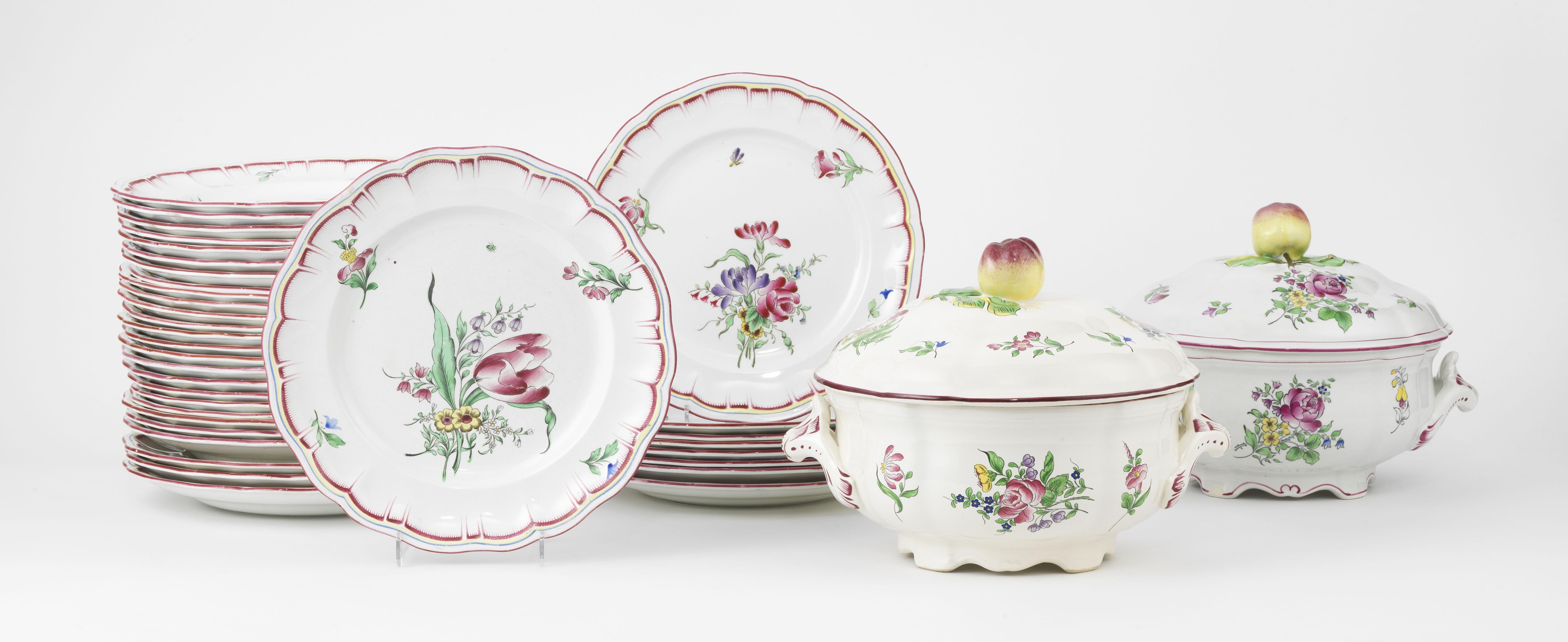 Lunéville, faïence, comrepant: 24 assietes à dîner, 6 à dessert, 2 légumiers et 3 plats (35p)