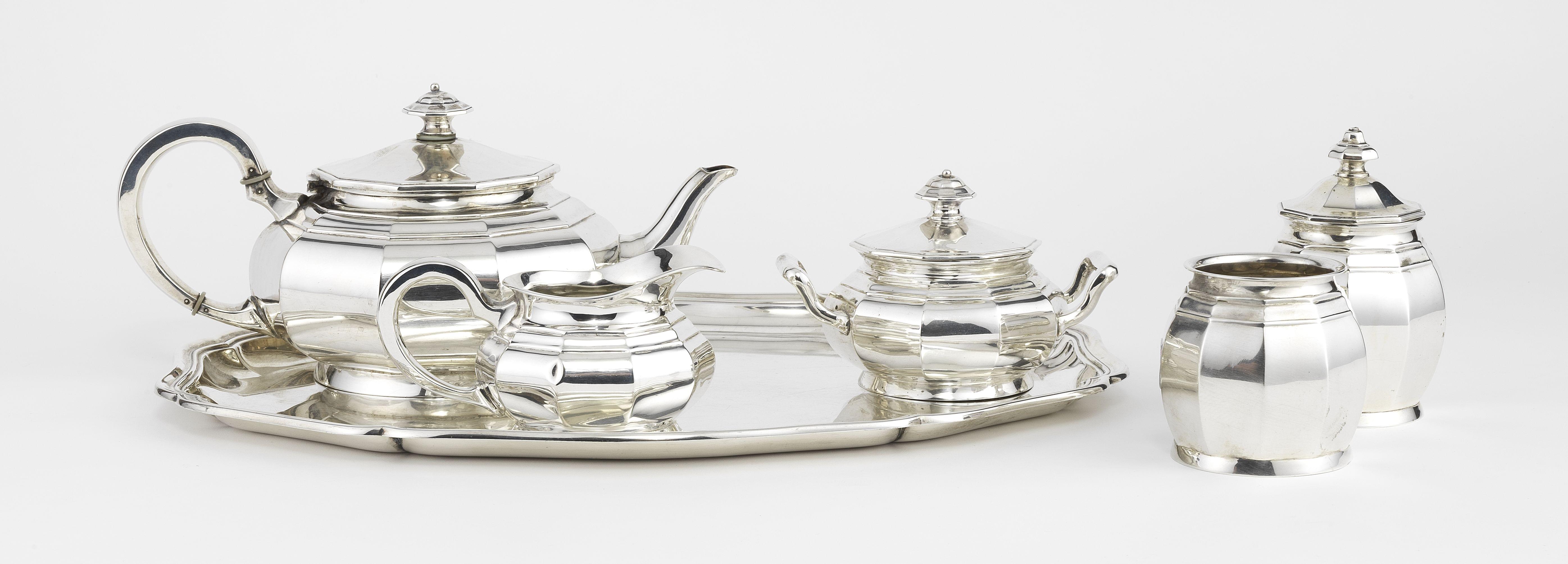 Argent 800, comprenant: théière, cafetière, crémier et sucrier,...