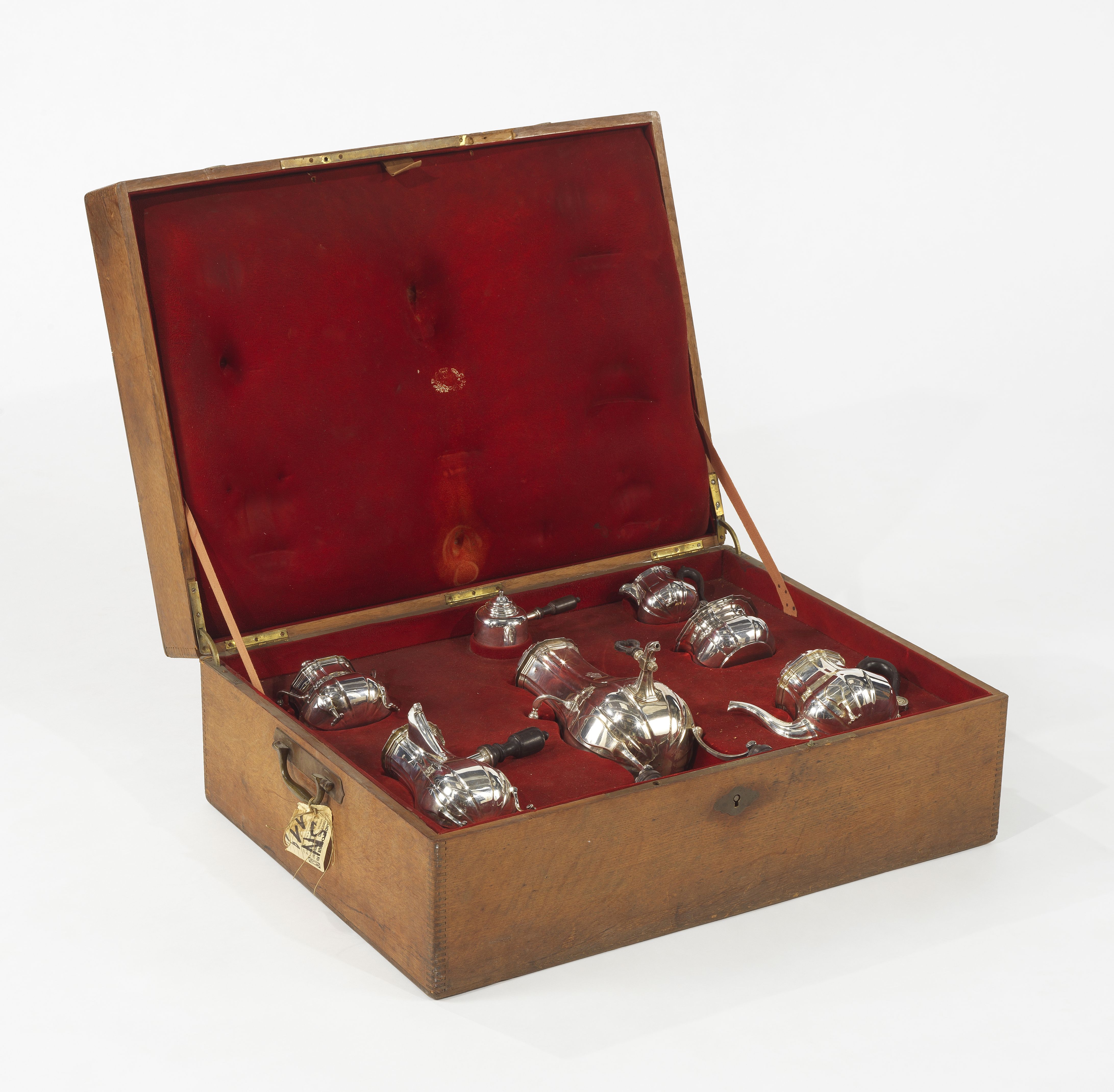 André Aucoc, 6 rue de la Paix , Paris, 1887-1911, argent et bois exotique, comprenant dans leur écrin en bois naturel: fontaine à thé armoriée d'Aramon, théière, cafetière, sucrier, pot à lait et bol, 4150 g. Provenance: Les Stern, une famille de collectionneurs. Pour les lots précédés d’un *, la TVA de 8,1% est due sur l’entier du prix d’adjudication.