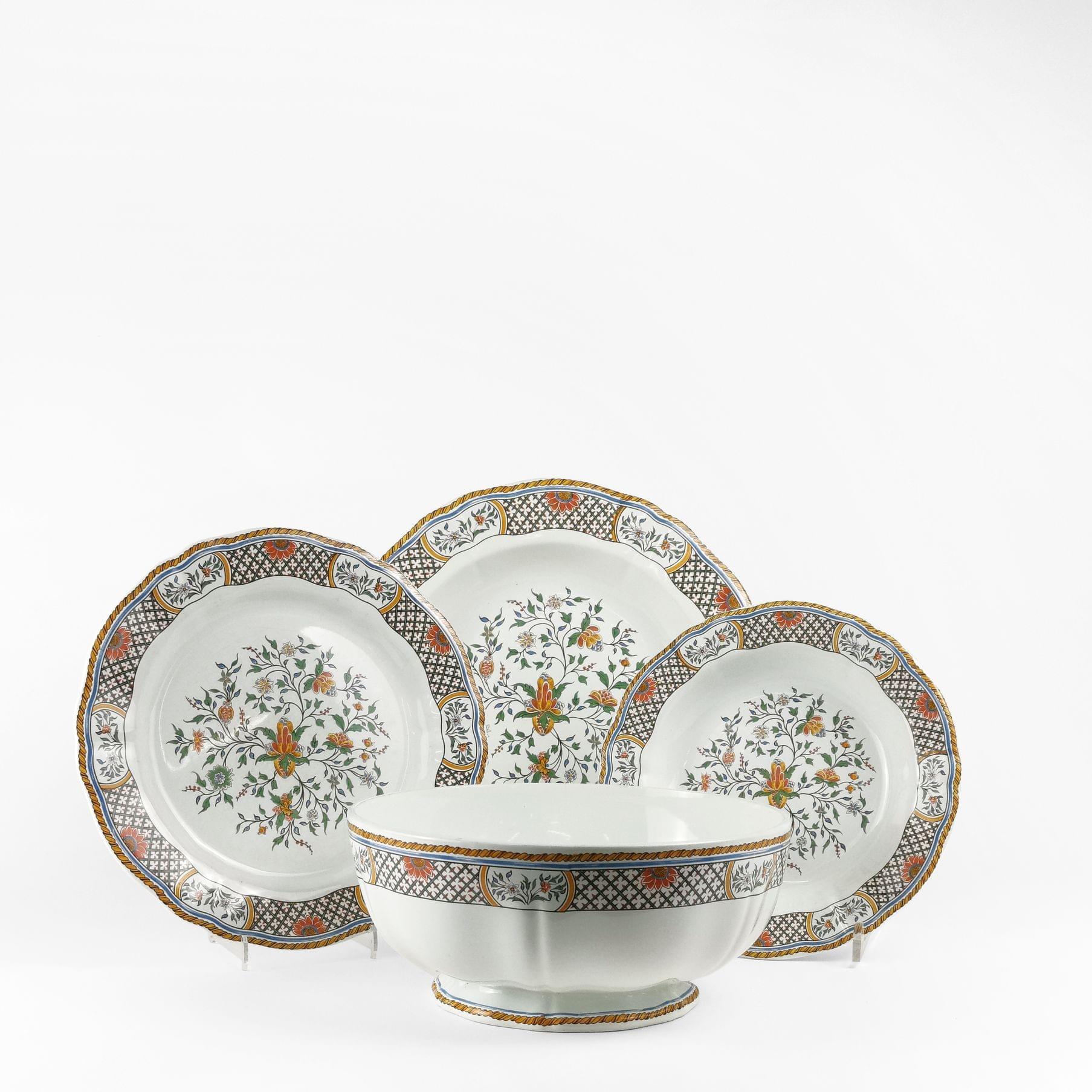 Gien, faïence, comprenant: 12 assiettes à dîner, 6 creuses, 12 à dessert et 2 pièces de service (32p)