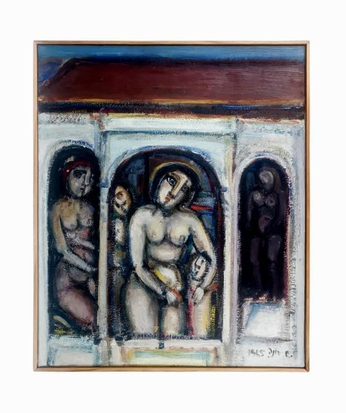 Femmes aux bains, huile sur toile, signée et datée 1965, 46x37 cm
