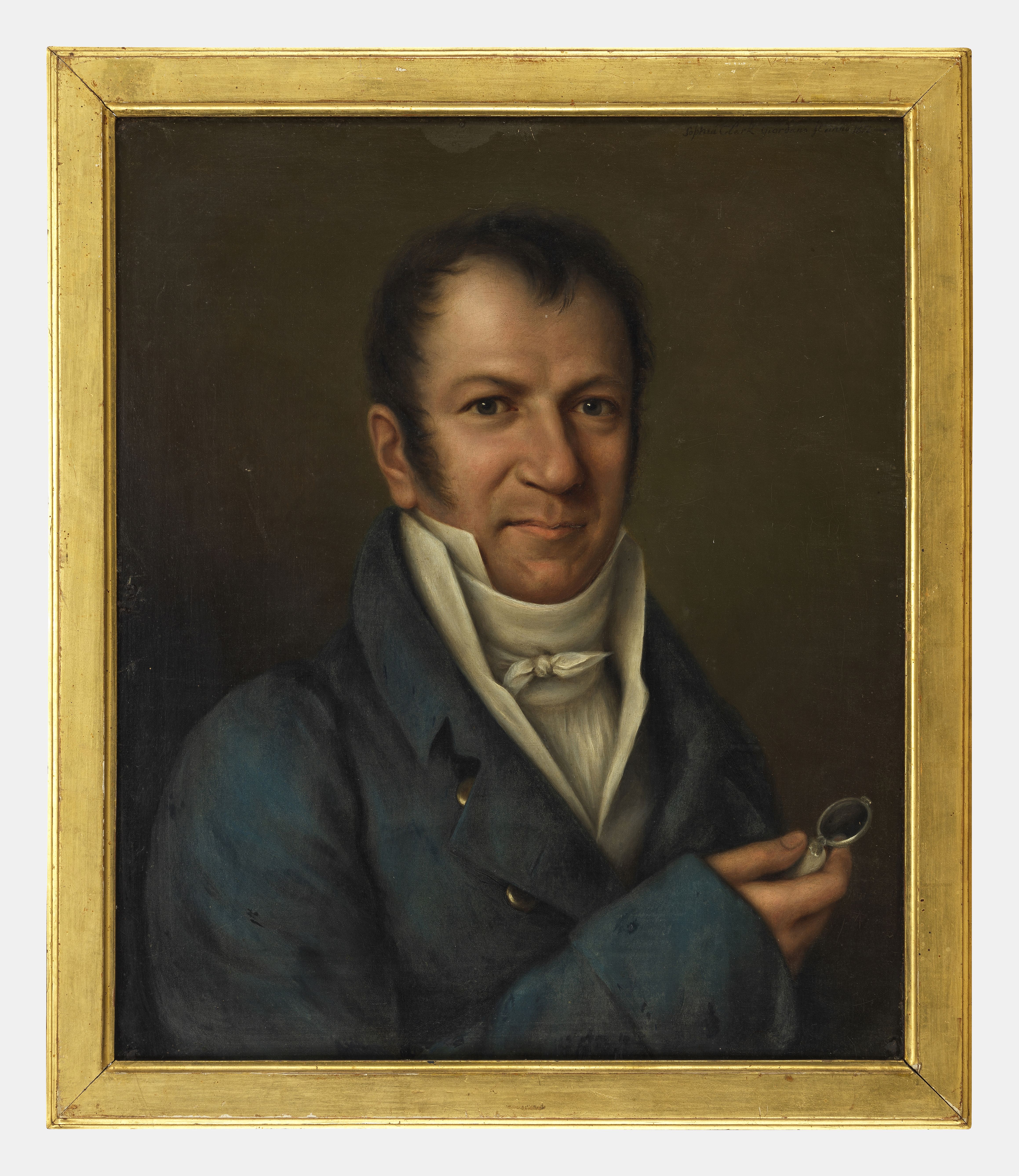 Portrait d'homme à la loupe, huile sur panneau, signée et datée 1812, 55x46 cm
