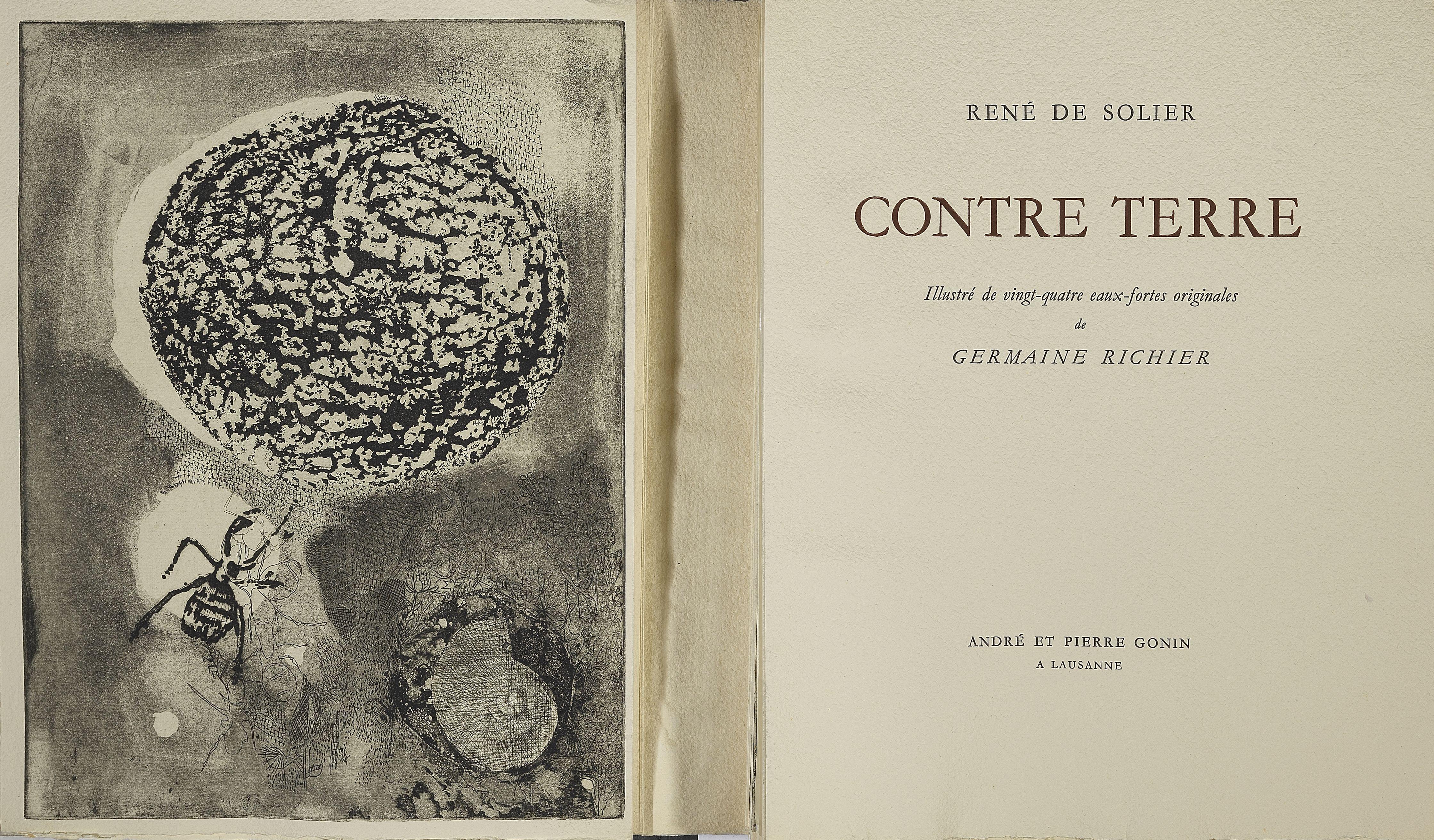 4547. SOLIER (René de) : Contre Terre. Illustration de vingt-quatre eaux-fortes de Germaine RICHIER. Lausanne, Ed. André et Pierre Gonin, 1958