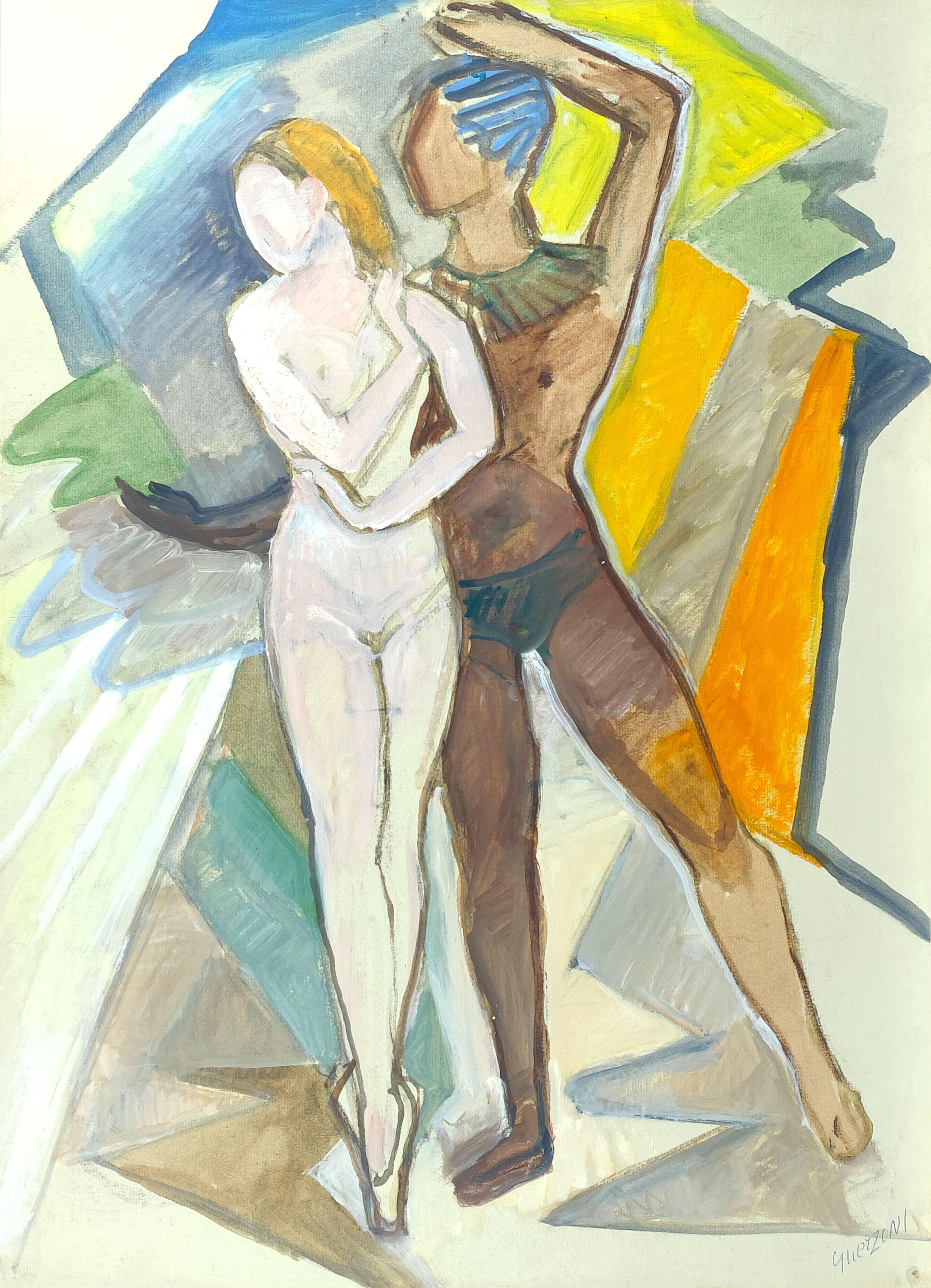 Accrobates, huile sur papier marouflée sur toile, signée, 61x46 cm