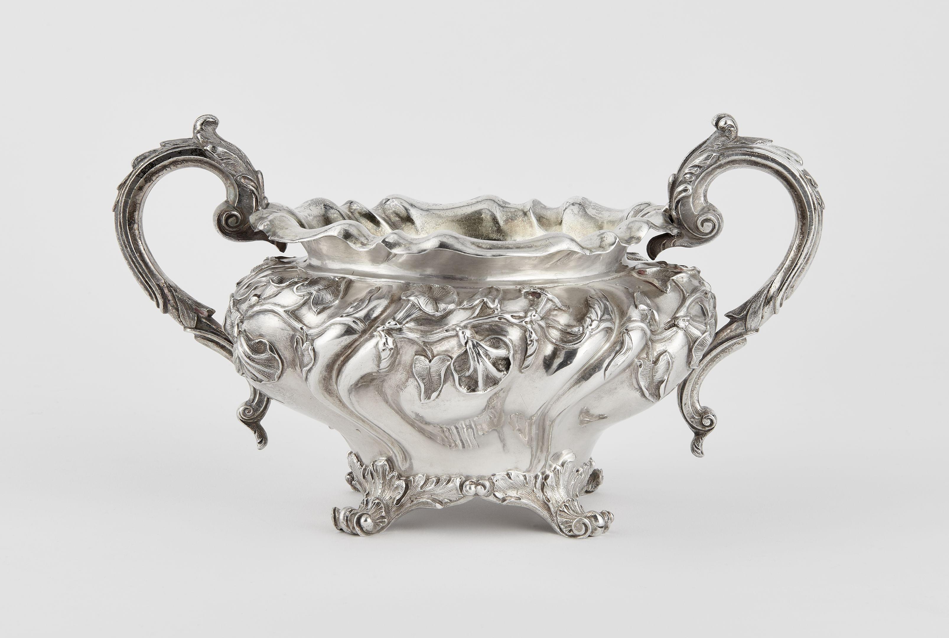 987. Verseuse festonnée à motif repoussé de fruits et séraphins