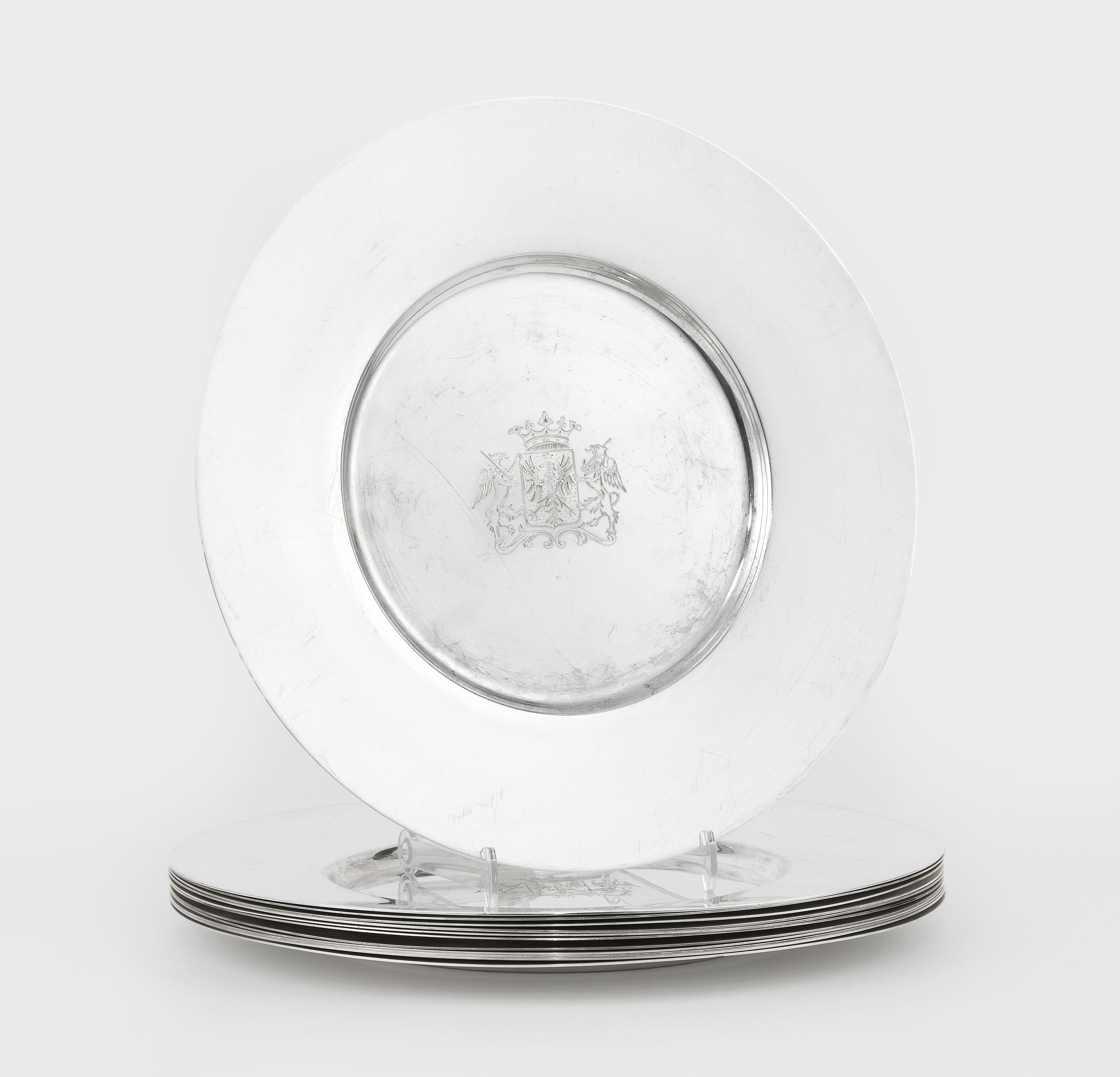 40. Suite de cinq plats à motif de musiciens, XVIIIe s