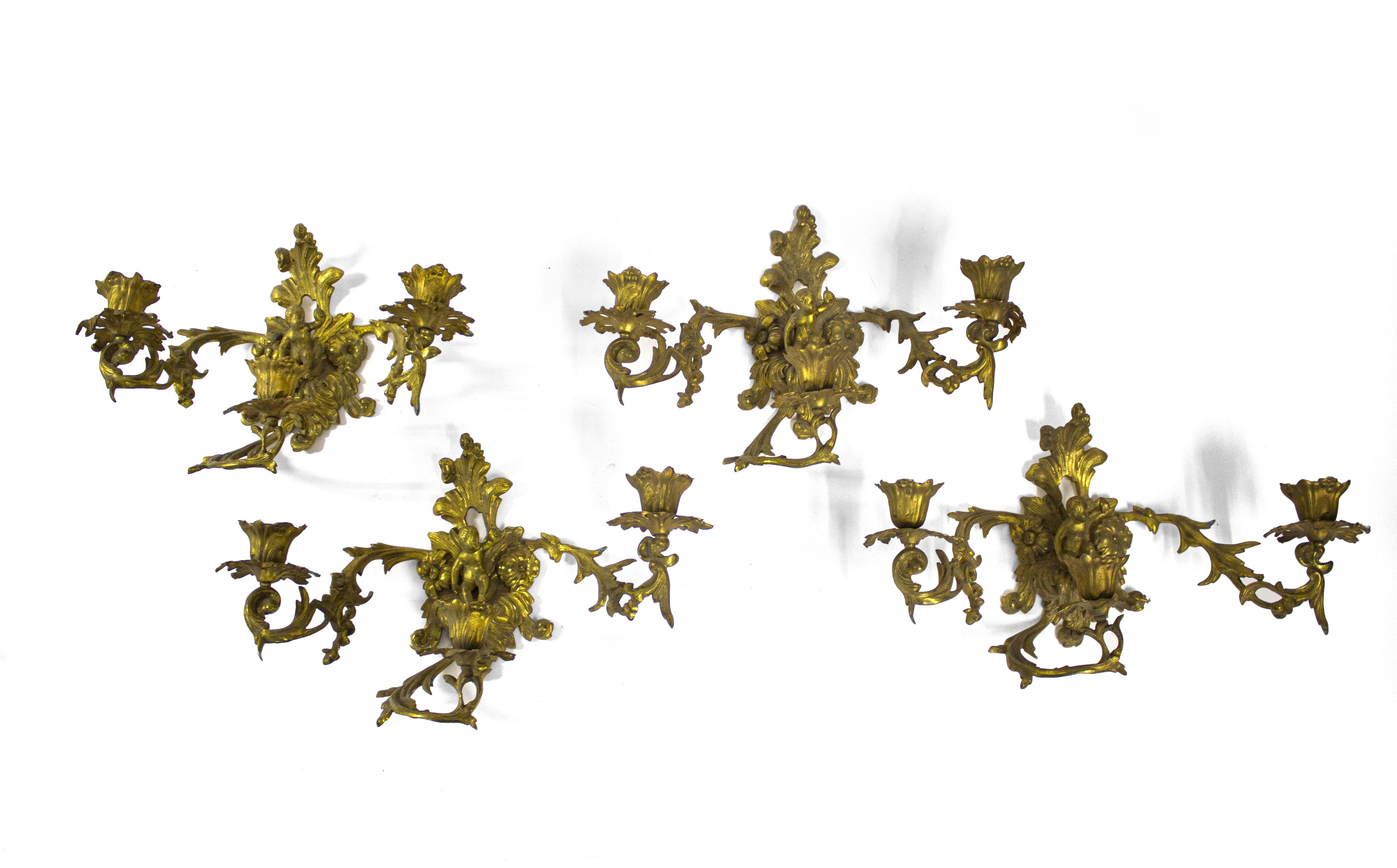 160. Trois importants candélabres, l'un à cinq lumières, les deux aut...